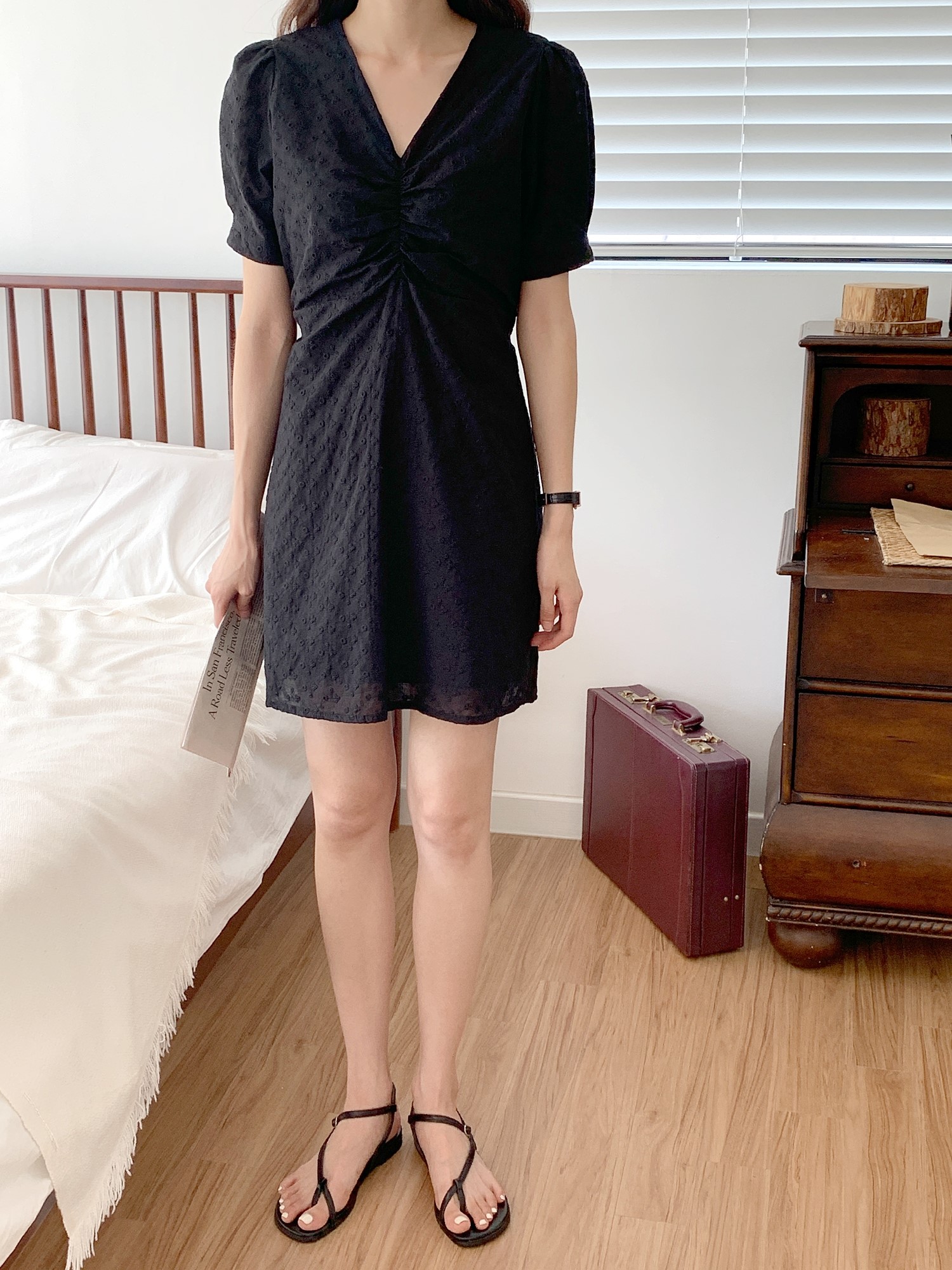品名:简约Vi领抽绳纯棉短袖连衣裙 ◎※☞颜色:블랙, 아이보리 ◎※☞尺寸:FREE ◎※☞材质:纯棉 100% ◎※☞注意事项:只能干洗,只能手洗,不能手洗,机洗,不能使用漂白剂,不能烘干,不能熨烫,不能曲折 翻译