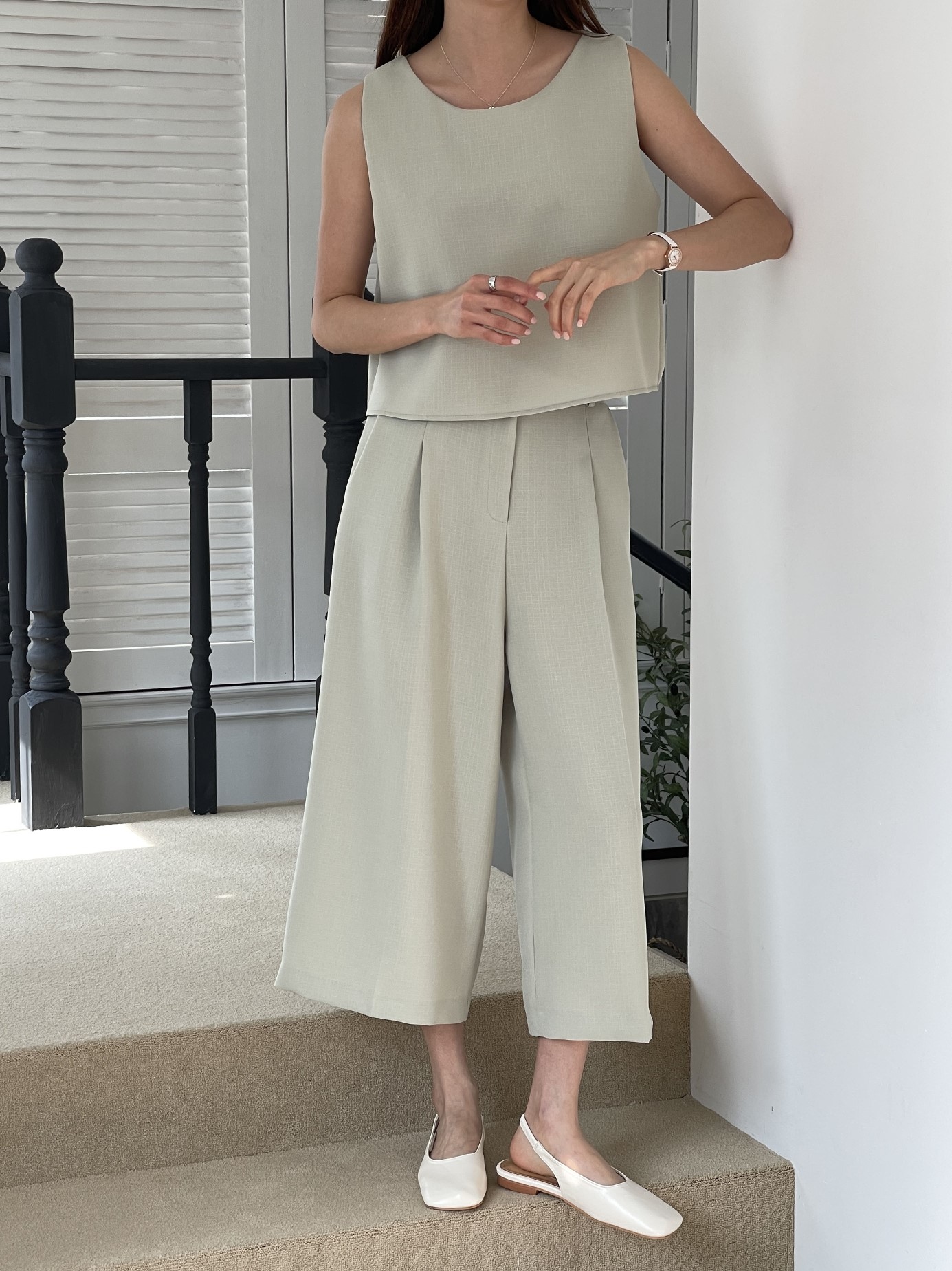 品名:마요SET(신상,세트,슬랙스,밴드슬랙스,나시) ◎※☞颜色:베이지, 연두 ◎※☞尺寸:FREE ◎※☞材质:聚酯 100% 翻译