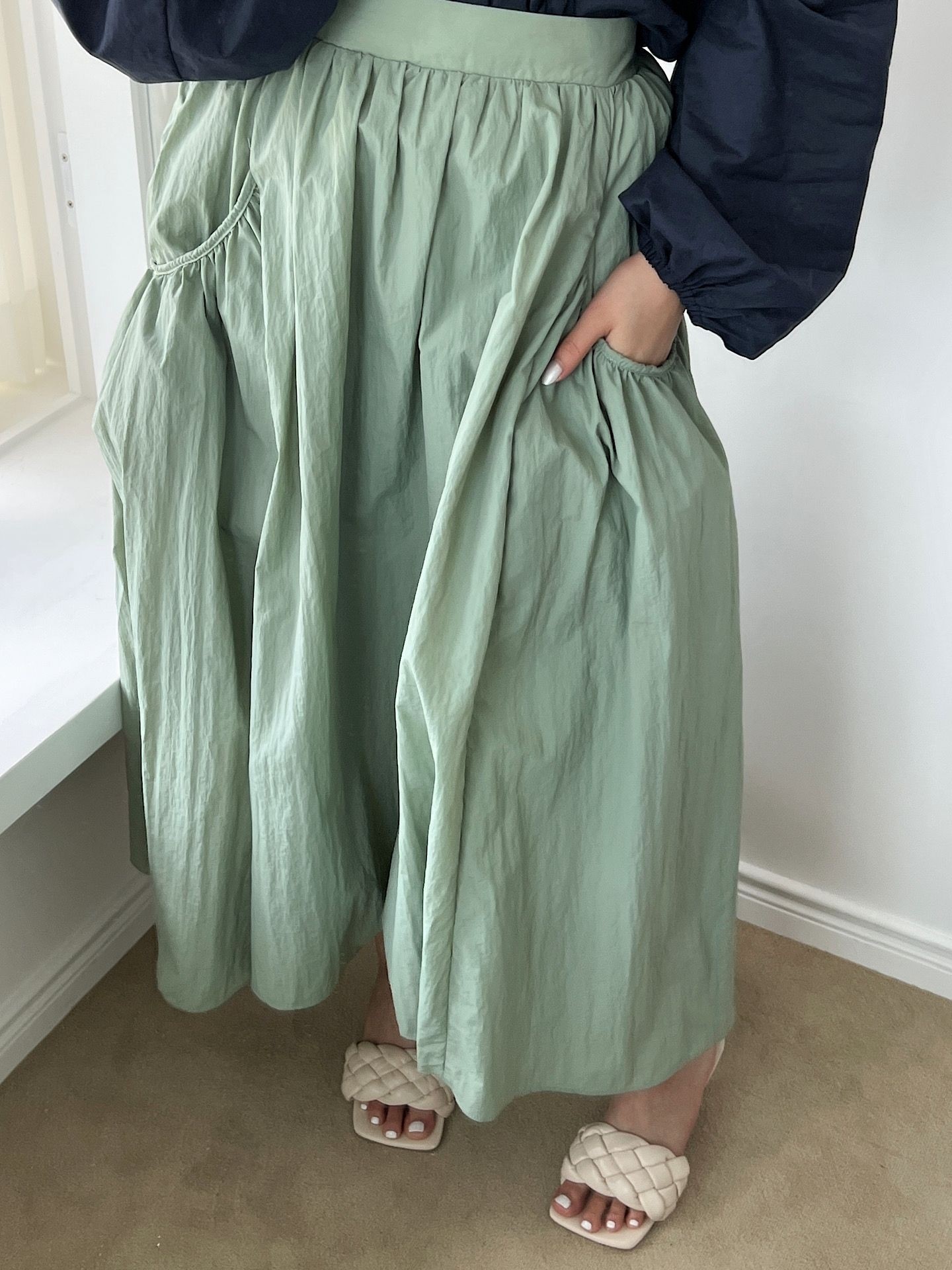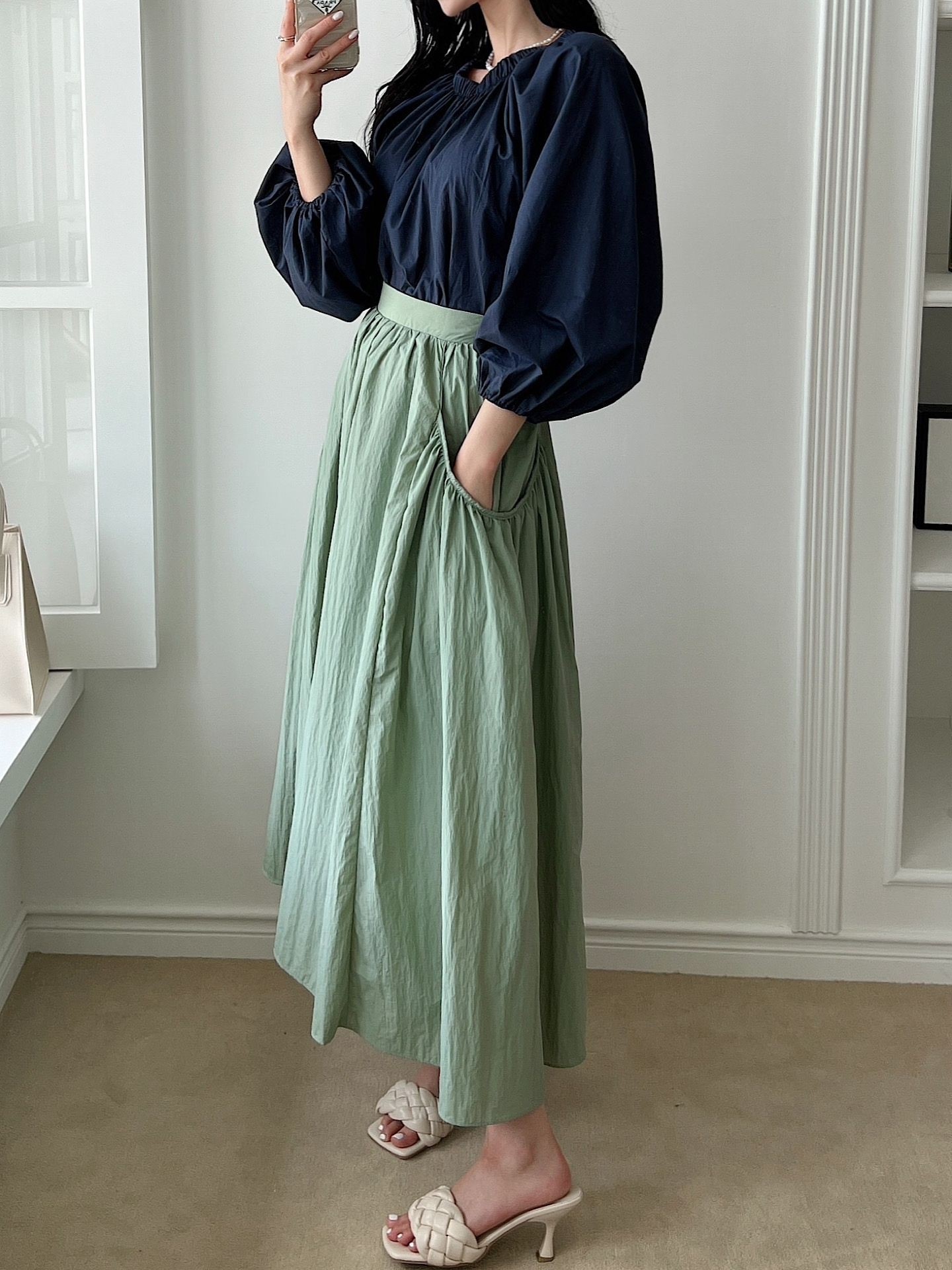 品名:时尚淑女A字长裙 ◎※☞颜色:네이비, 민트 ◎※☞尺寸:FREE ◎※☞材质:尼龙 100% ◎※☞注意事项:只能干洗,只能手洗,不能手洗,机洗,不能使用漂白剂,不能烘干,不能熨烫,不能曲折 翻译