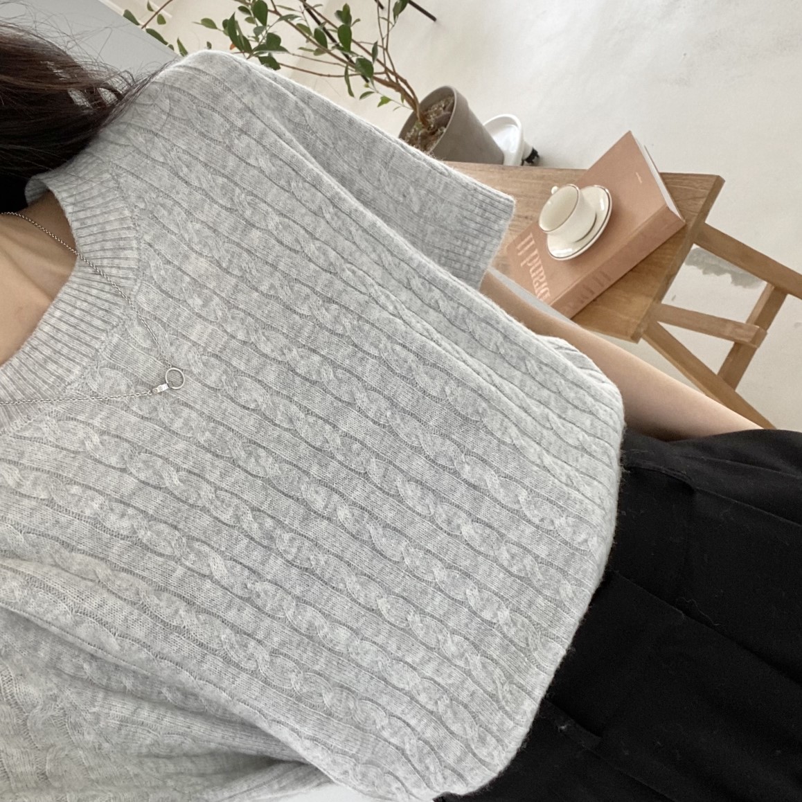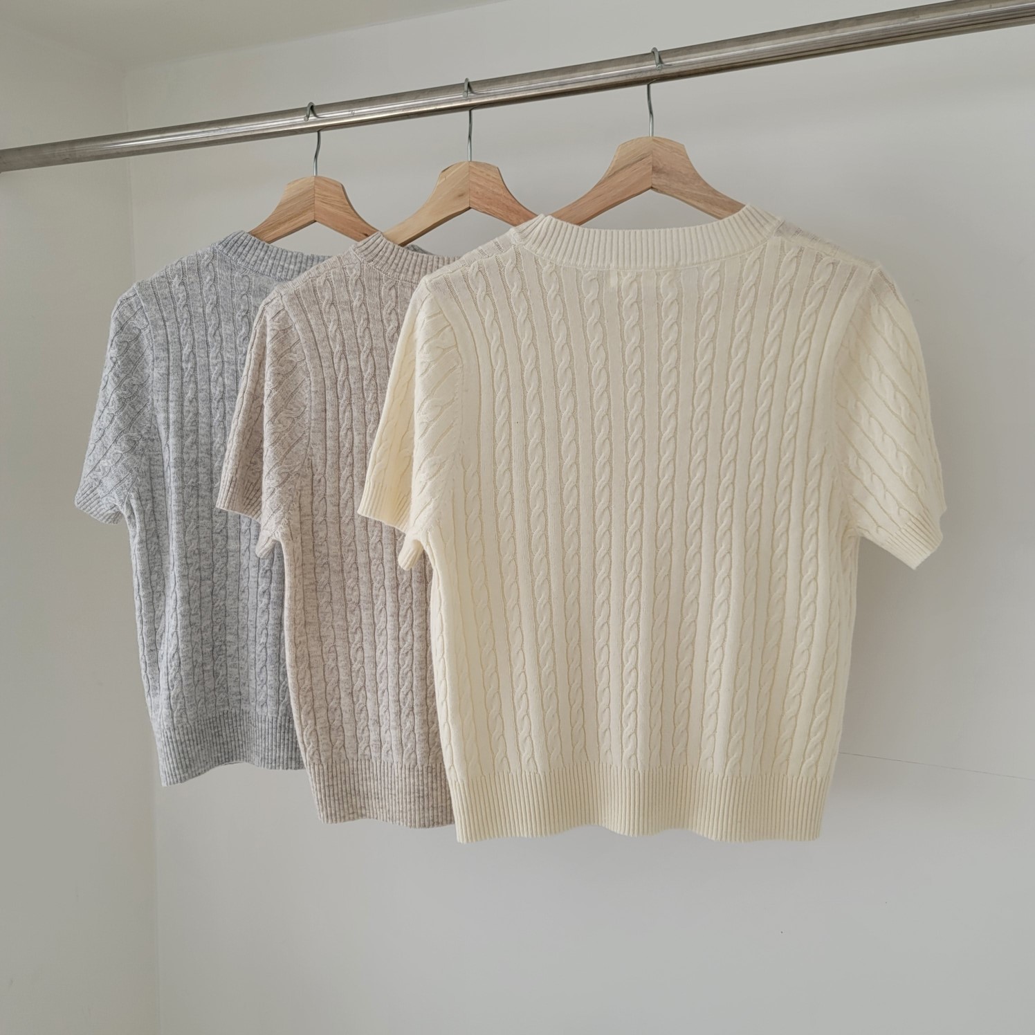 品名:꽈배기R(신상,꽈배기니트,반팔니트) ◎※☞颜色:그레이, 베이지, 아이보리 ◎※☞尺寸:FREE ◎※☞材质:腈纶 35%,尼龙 30%,羊毛 35% 翻译