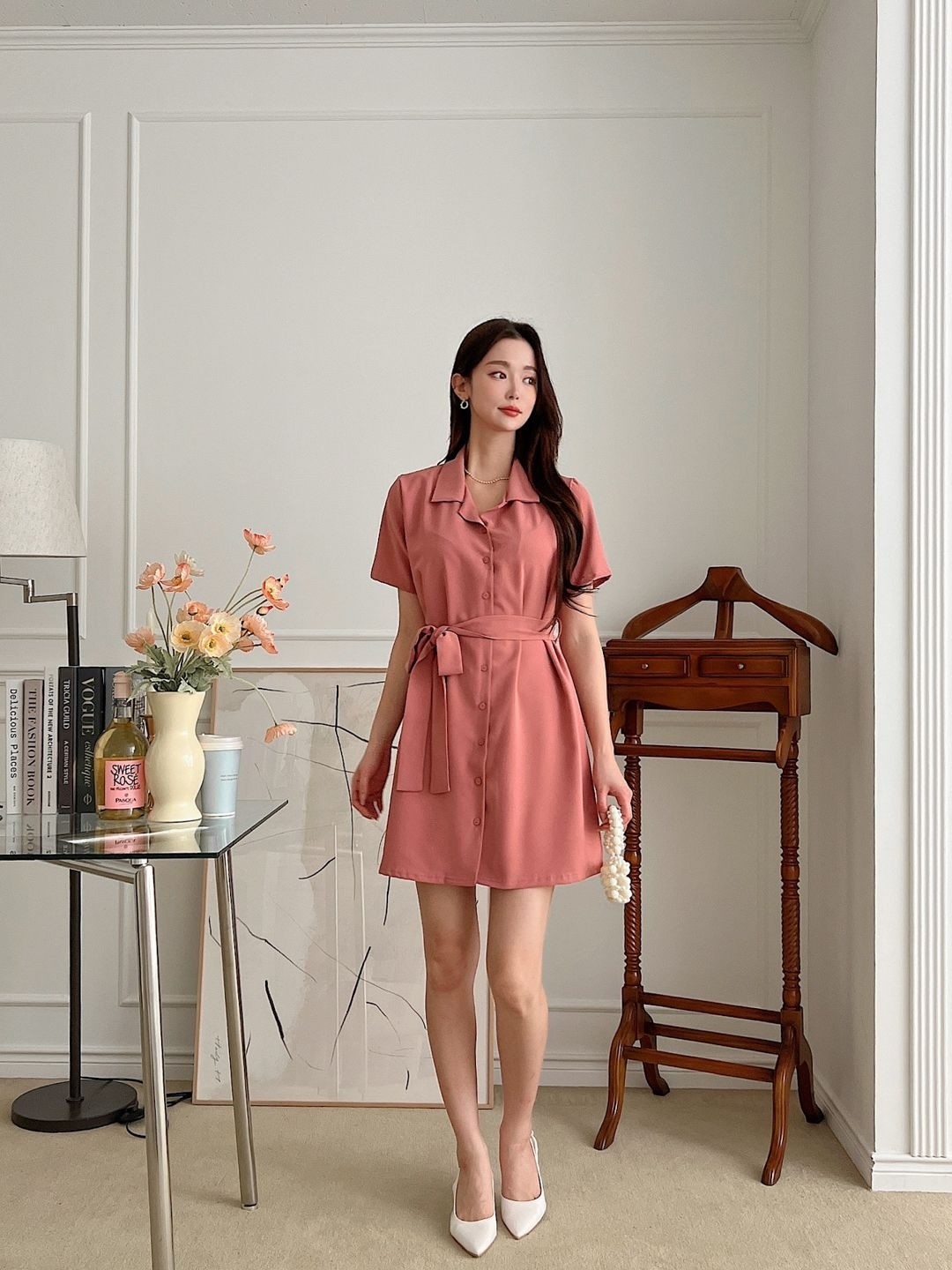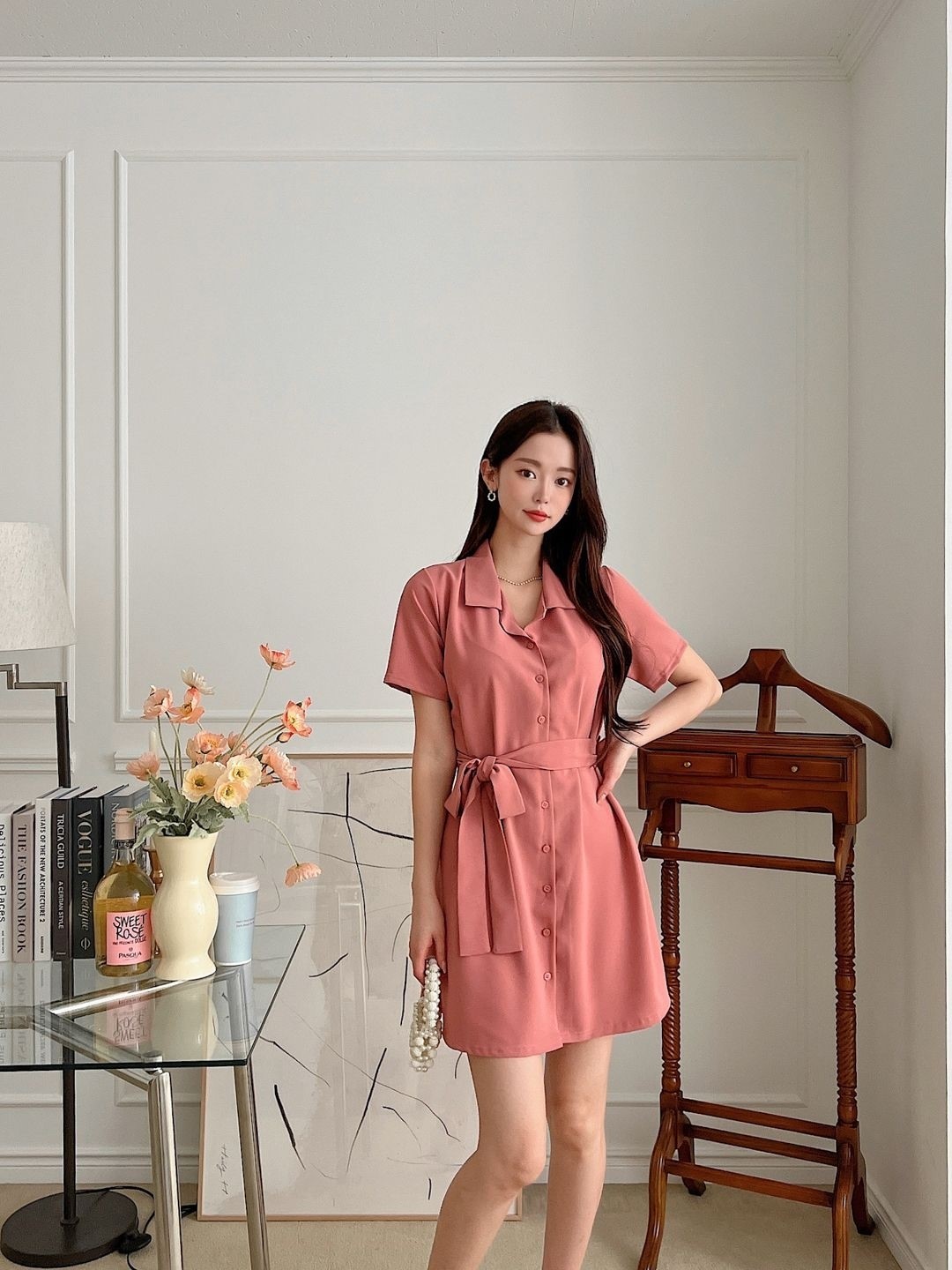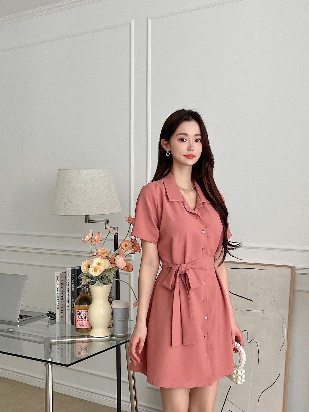品名:로이벨트원피스 (2color) ◎※☞颜色:블랙, 핑크 ◎※☞尺寸:FREE ◎※☞材质:聚酯 100% 翻译