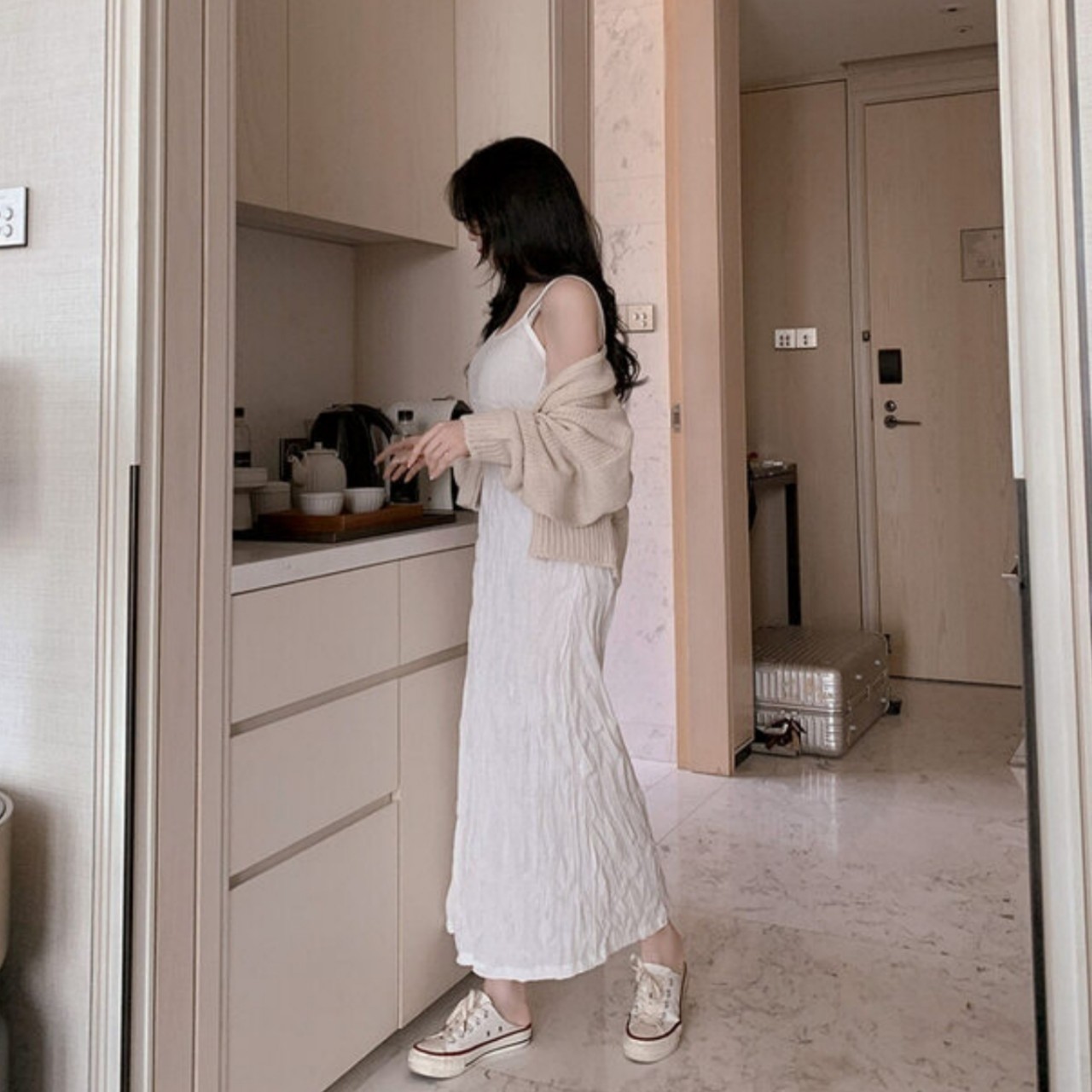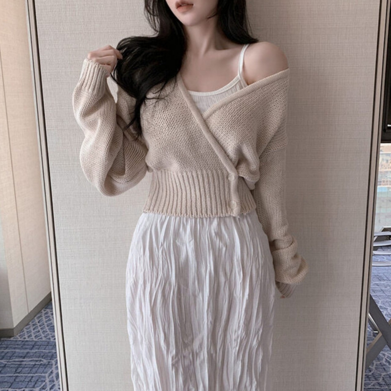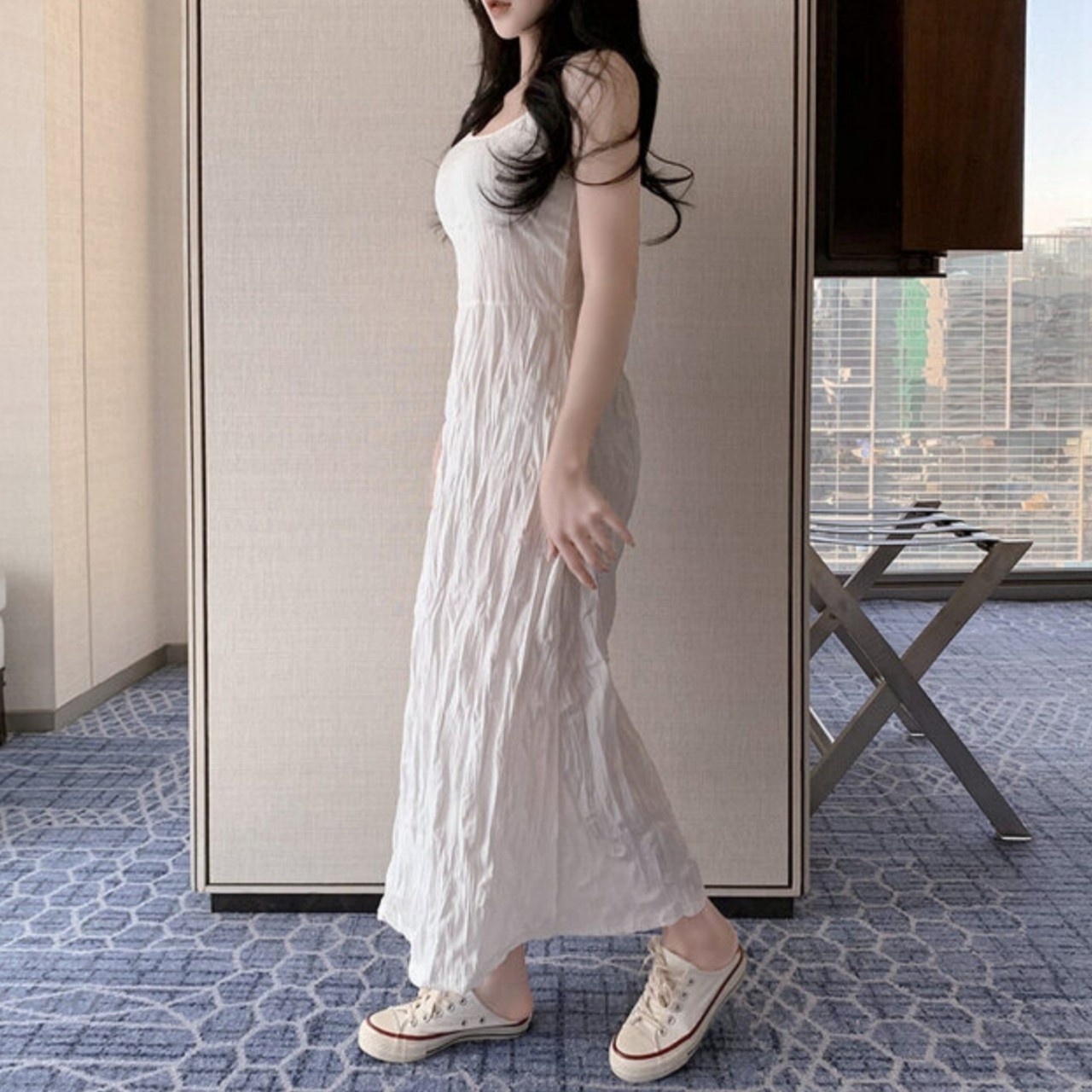 品名:빅토리 나시 주름 원피스 ◎※☞颜色:베이지, 블랙, 아이보리 ◎※☞尺寸:FREE ◎※☞材质:弹力 5%,纯棉 35%,聚酯 60% 翻译