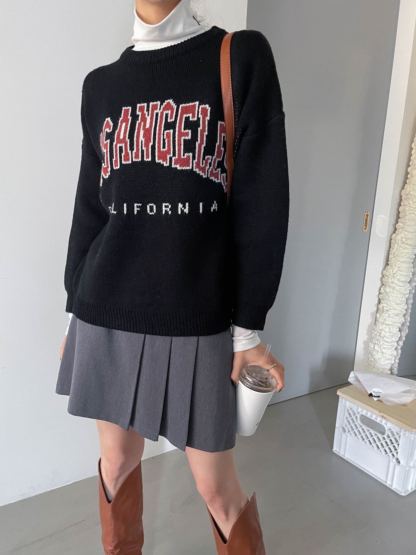 品名:sale23#) 로스앤젤레스 니트 ◎※☞颜色:블랙, 챠콜 ◎※☞尺寸:FREE ◎※☞材质:腈纶 50%,尼龙 25%,聚酯 25% ◎※☞注意事项:只能干洗,只能手洗,不能手洗,机洗,不能使用漂白剂,不能烘干,不能熨烫,不能曲折