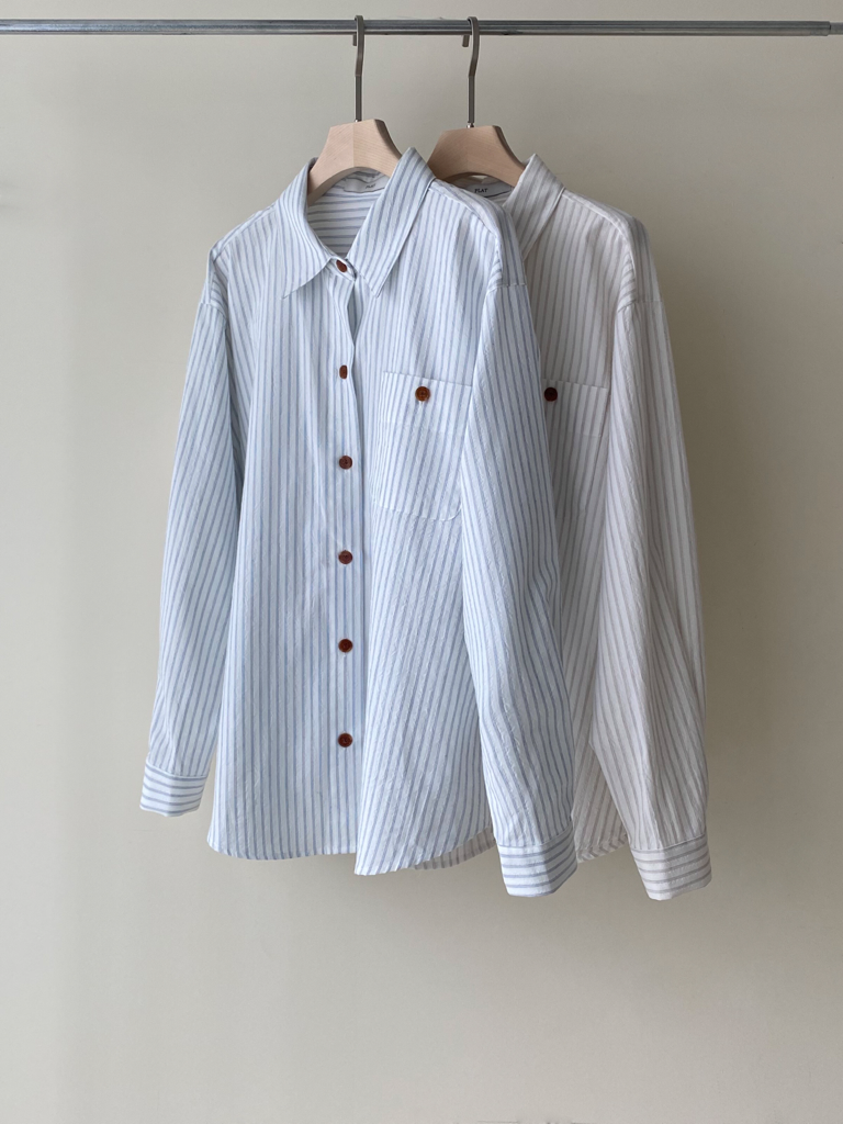 品名:요거스트라이프셔츠 ◎※☞颜色:베이지, 소라 ◎※☞尺寸:FREE ◎※☞材质:纯棉 85%,聚酯 15% 翻译