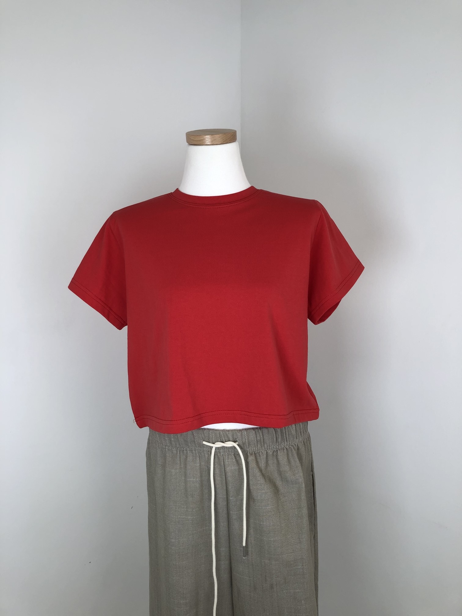 品名:플로우 짧지 않은 크롭t ◎※☞颜色:그레이, 블랙, 블루, 빨강, 화이트 ◎※☞尺寸:FREE ◎※☞材质:纯棉 100% 翻译