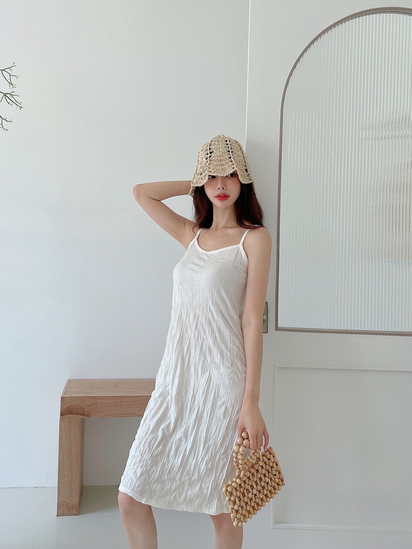 品名:미니 빅토리 나시 주름 원피스 ◎※☞颜色:베이지, 블랙, 화이트 ◎※☞尺寸:FREE ◎※☞材质:스판 5%,聚酯 65%,人造纤维 30% 翻译
