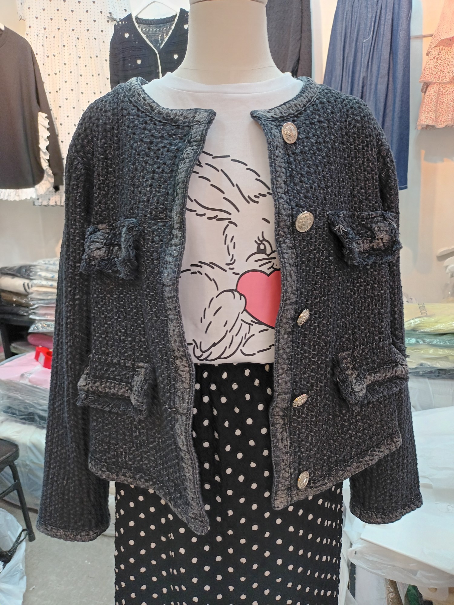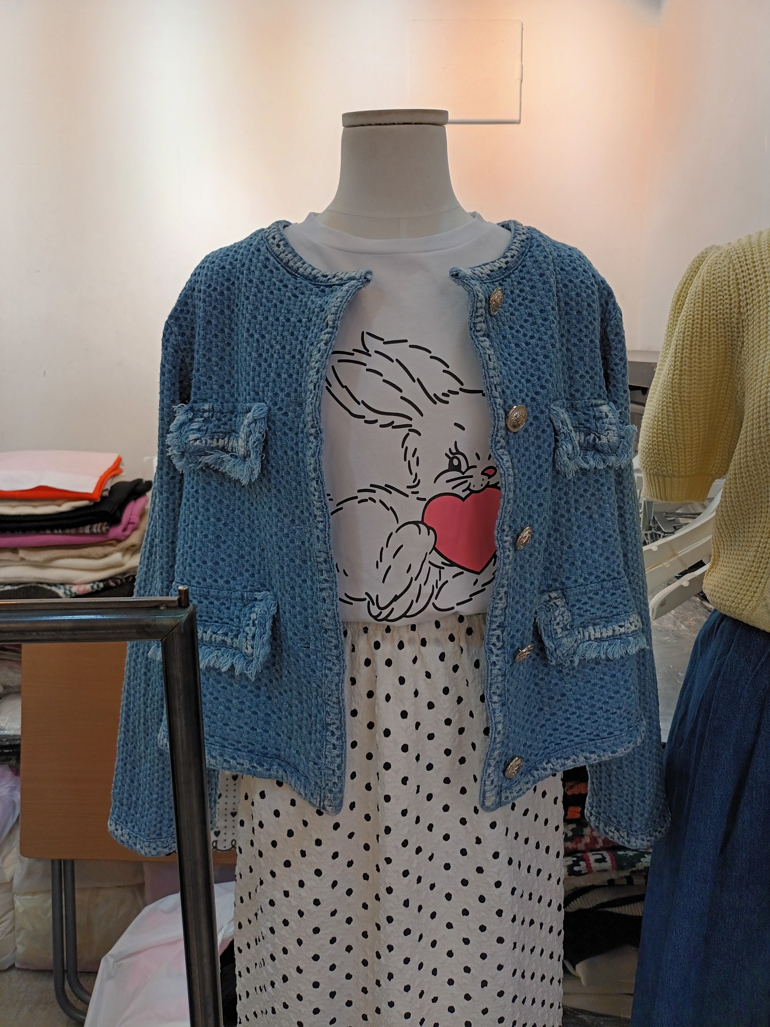 品名:데님 트위드 자켓 ◎※☞颜色:연청, 흑청 ◎※☞尺寸:FREE ◎※☞材质:데님 100% ◎※☞注意事项:只能干洗,只能手洗,不能手洗,机洗,不能使用漂白剂,不能烘干,不能熨烫,不能曲折 翻译