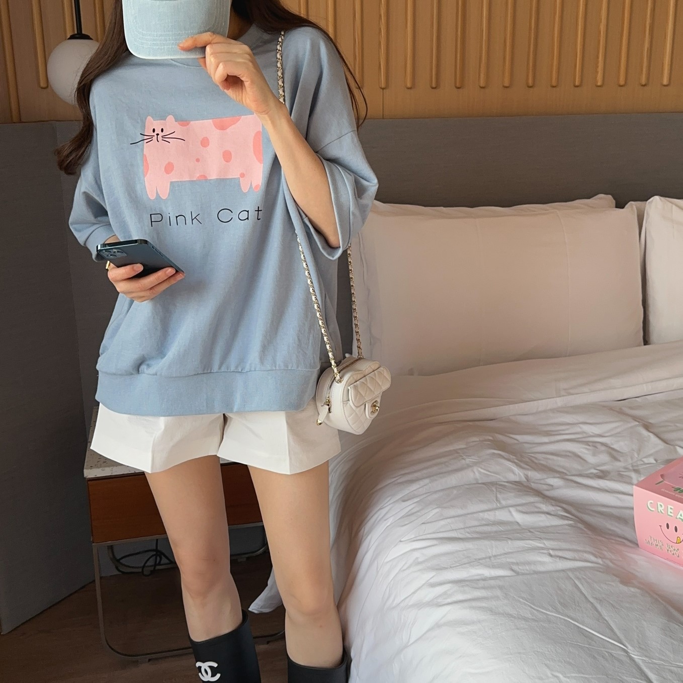 品名:핑크캣반팔맨투맨 ◎※☞颜色:네이비, 소라, 아이보리 ◎※☞尺寸:FREE ◎※☞材质:纯棉 100% ◎※☞注意事项:只能干洗,只能手洗,不能手洗,机洗,不能使用漂白剂,不能烘干,不能熨烫,不能曲折 翻译