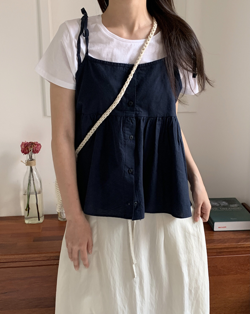 品名:오트끈 나시 리본 오픈 조끼 ◎※☞颜色:네이비, 블랙, 아이보리 ◎※☞尺寸:FREE ◎※☞材质:纯棉 100% ◎※☞注意事项:只能干洗,只能手洗,不能手洗,机洗,不能使用漂白剂,不能烘干,不能熨烫,不能曲折