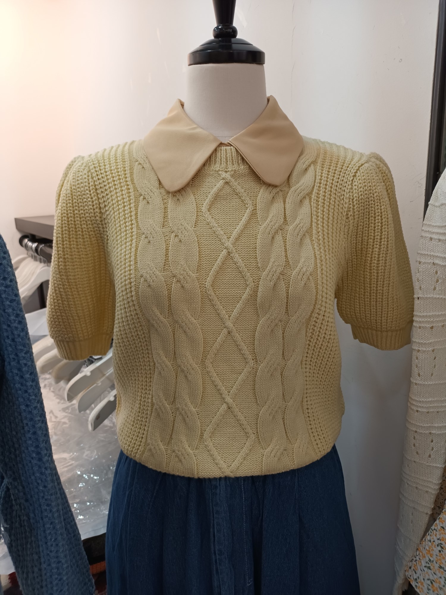 品名:sale23#)카라 반팔니트 ◎※☞颜色:옐로우, 핑크 ◎※☞尺寸:FREE ◎※☞材质:腈纶 50%,尼龙 50% ◎※☞注意事项:只能干洗,只能手洗,不能手洗,机洗,不能使用漂白剂,不能烘干,不能熨烫,不能曲折