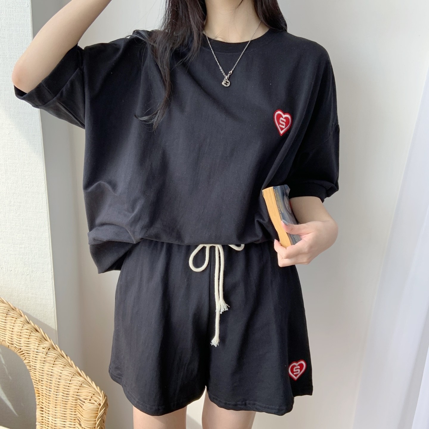 品名:신상 에스세트 투피스세트 ◎※☞颜色:백염, 블랙 ◎※☞尺寸:FREE ◎※☞材质:纯棉 100% ◎※☞注意事项:只能干洗,只能手洗,不能手洗,机洗,不能使用漂白剂,不能烘干,不能熨烫,不能曲折 翻译