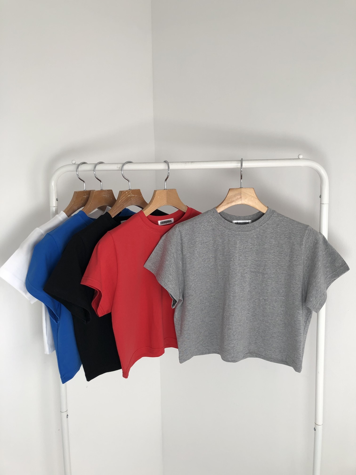 品名:플로우 짧지 않은 크롭t ◎※☞颜色:그레이, 블랙, 블루, 빨강, 화이트 ◎※☞尺寸:FREE ◎※☞材质:纯棉 100% 翻译