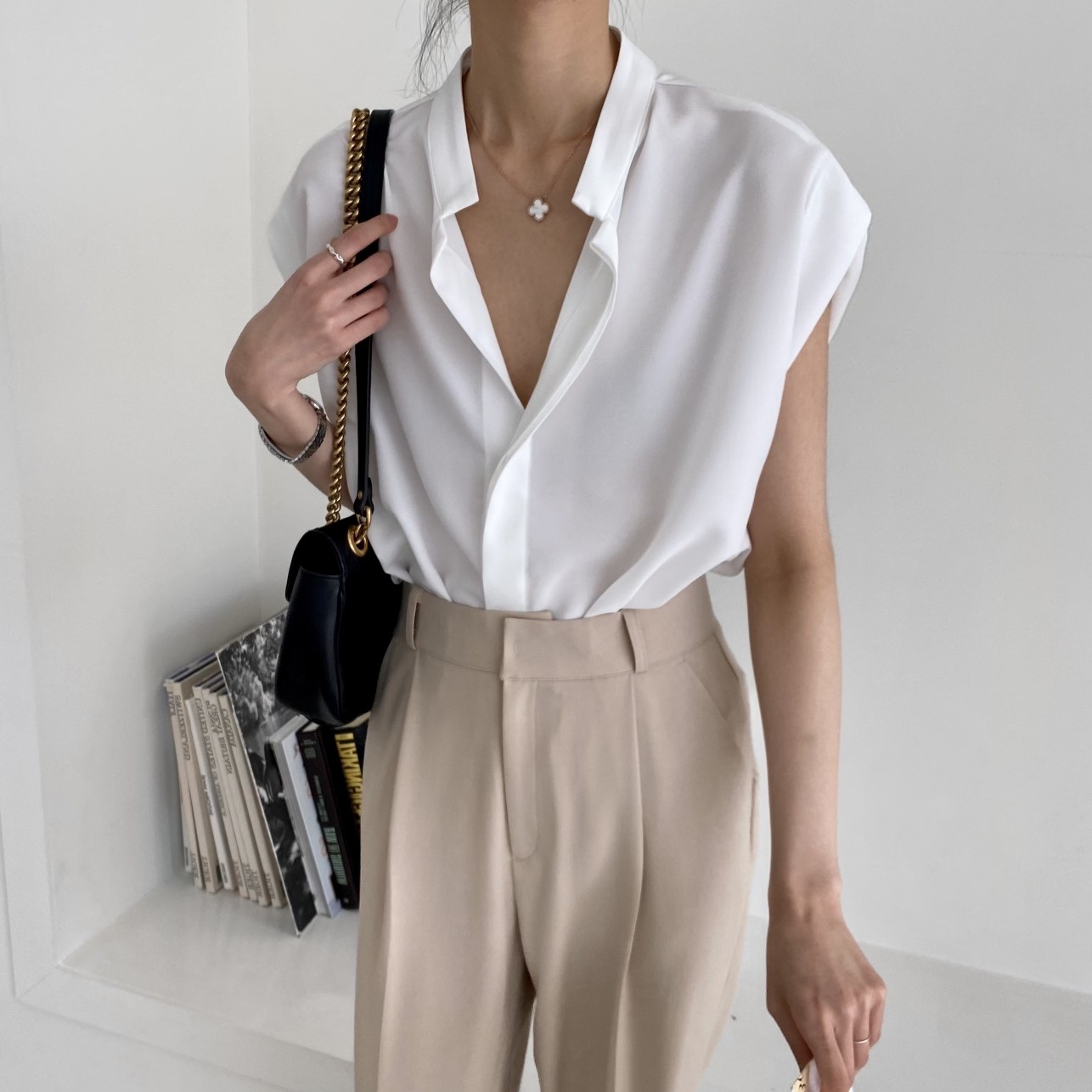 品名:무드나시BL(신상,나시블라우스,심플,깔끔) ◎※☞颜色:블랙, 아이보리 ◎※☞尺寸:FREE ◎※☞材质:聚酯 100% 翻译
