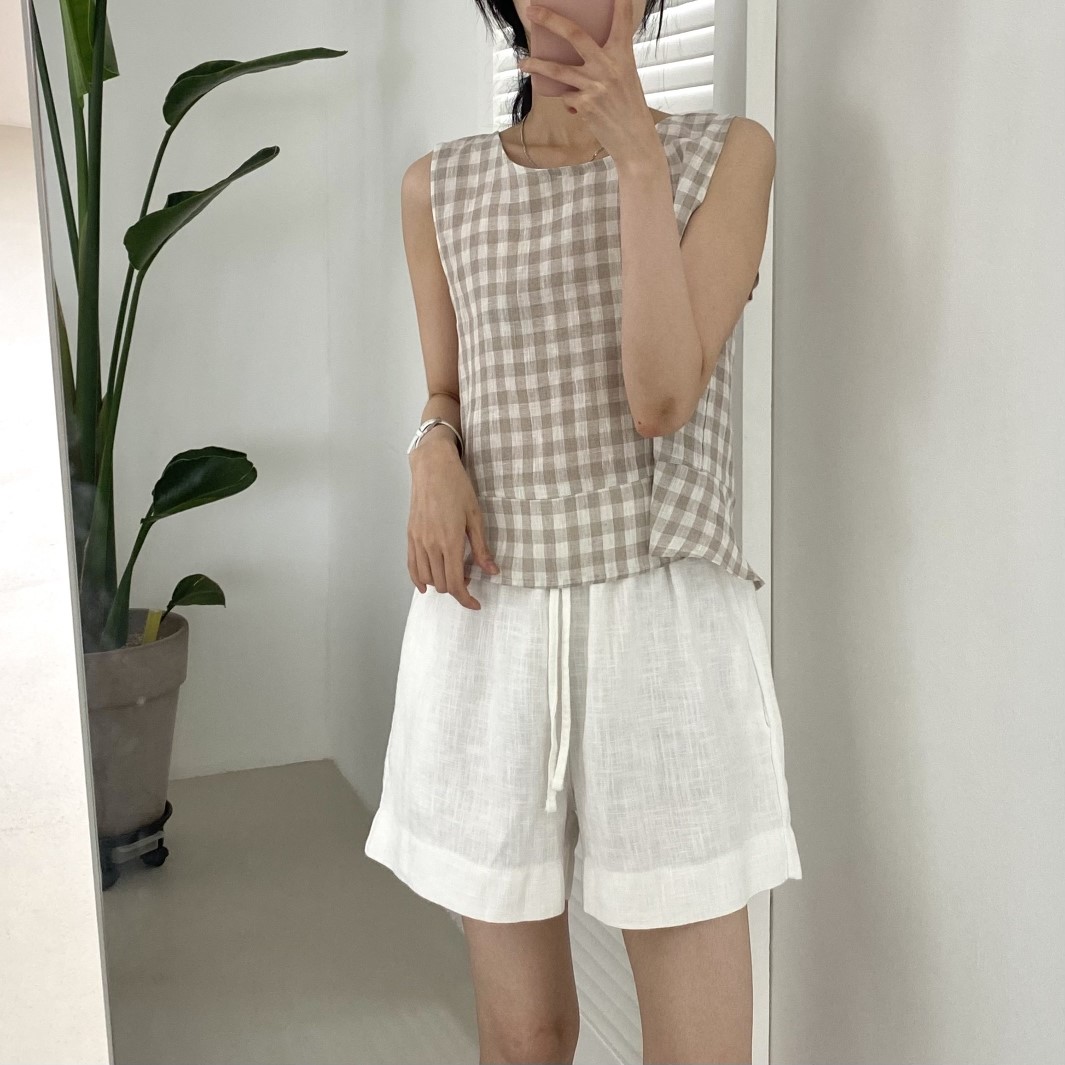 品名:린넨체크나시(신상,나시,리본,린넨,블라우스,체크) ◎※☞颜色:베이지, 브라운, 카키 ◎※☞尺寸:FREE ◎※☞材质:亚麻 100% 翻译