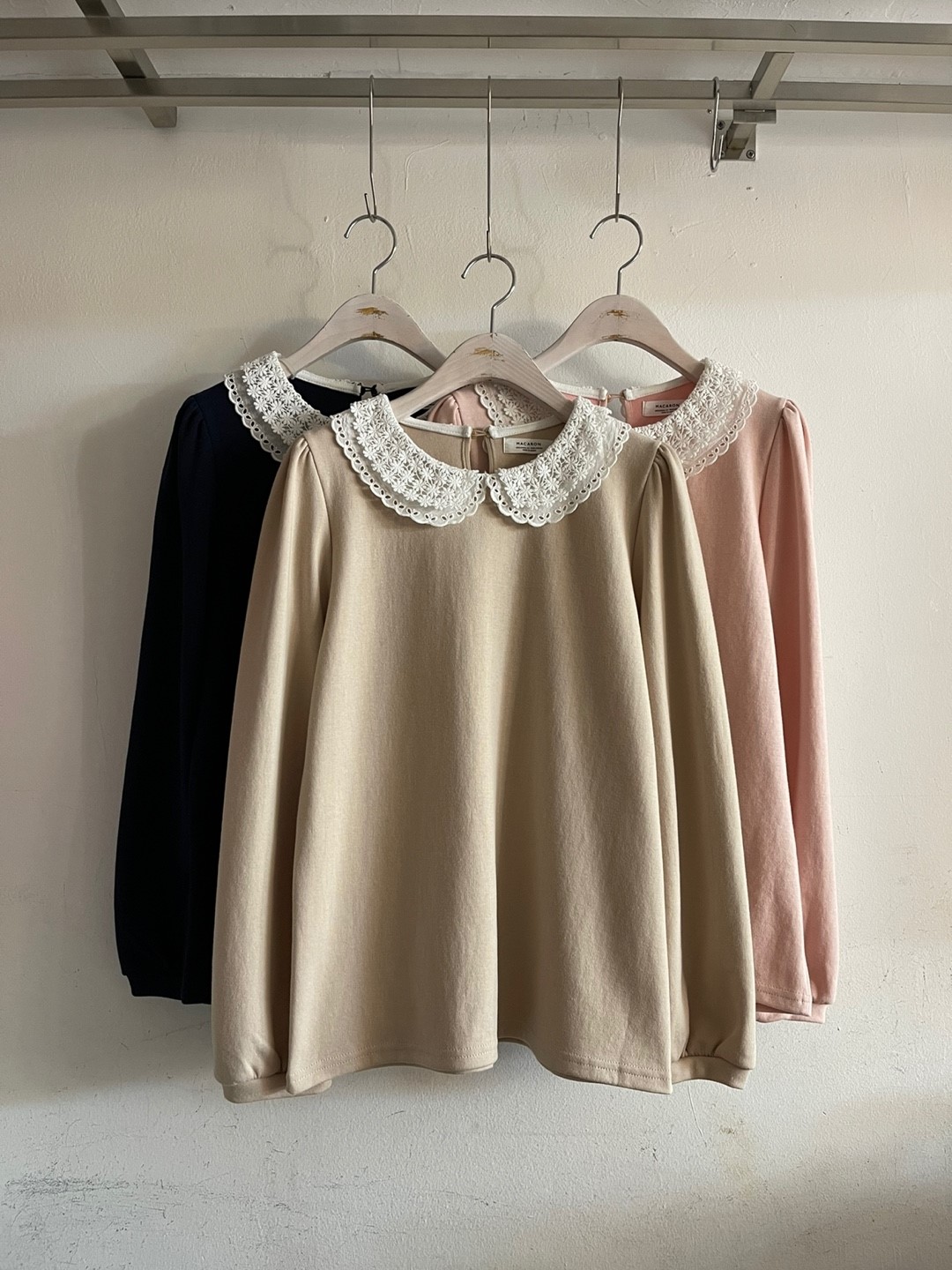 品名:꽃카라티 #간절기 배색 레이스 프릴 ◎※☞颜色:네이비, 베이지, 핑크 ◎※☞尺寸:FREE ◎※☞材质:聚酯 20%,纯棉 80% 翻译