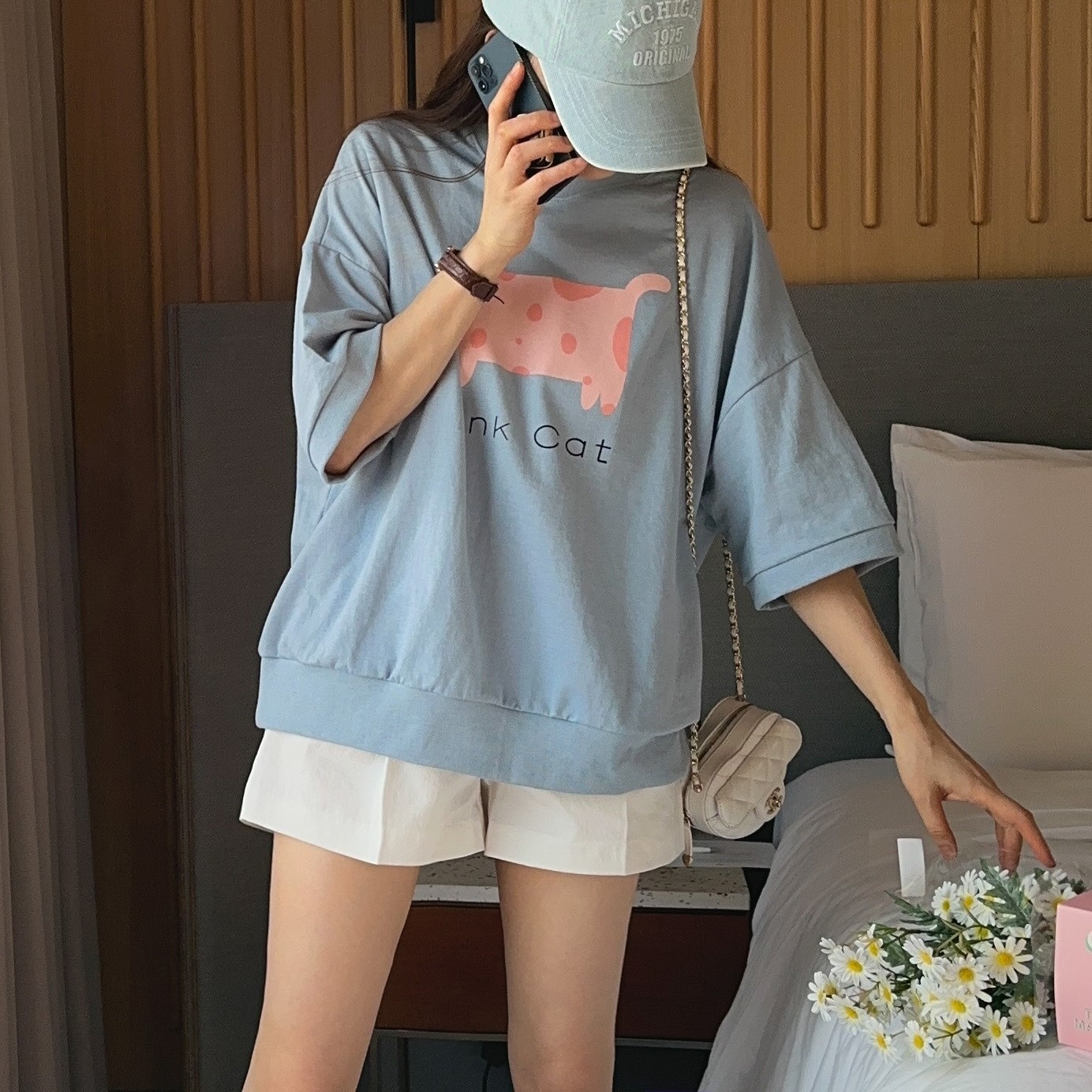 品名:핑크캣반팔맨투맨 ◎※☞颜色:네이비, 소라, 아이보리 ◎※☞尺寸:FREE ◎※☞材质:纯棉 100% ◎※☞注意事项:只能干洗,只能手洗,不能手洗,机洗,不能使用漂白剂,不能烘干,不能熨烫,不能曲折 翻译
