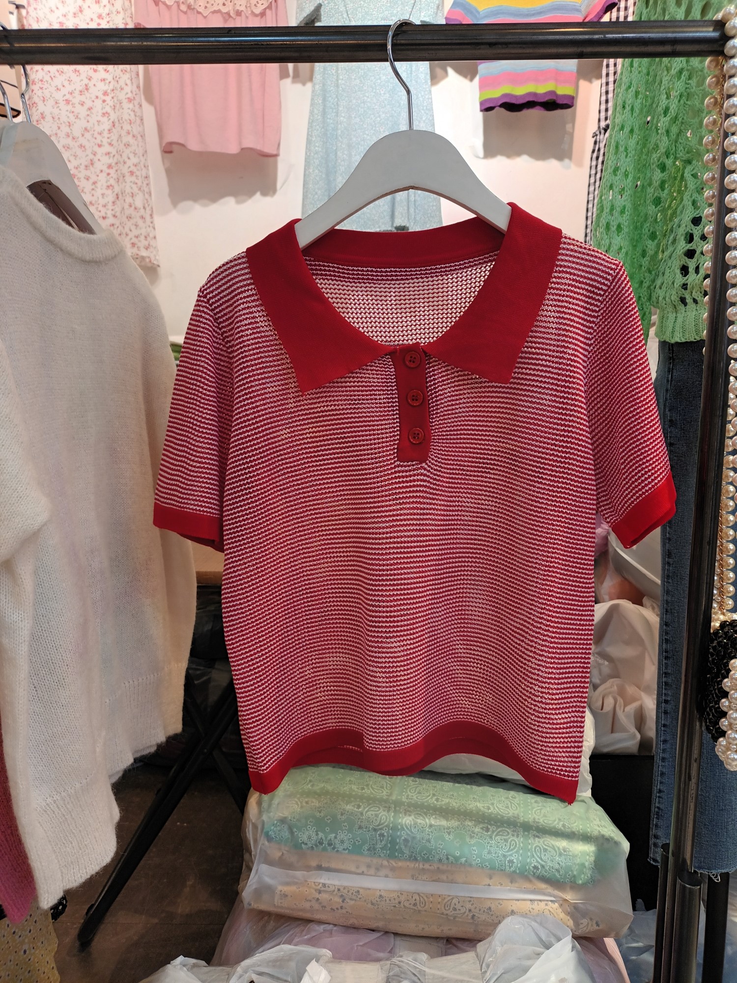 品名:sale23#)메쉬 카라니트 ◎※☞颜色:레드 ◎※☞尺寸:FREE ◎※☞材质:腈纶 50%,聚酯 50% ◎※☞注意事项:只能干洗,只能手洗,不能手洗,机洗,不能使用漂白剂,不能烘干,不能熨烫,不能曲折