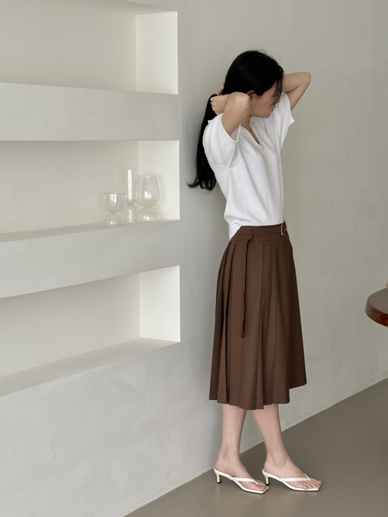 品名:벨트주름SK ◎※☞颜色:베이지, 브라운 ◎※☞尺寸:M, S ◎※☞材质:聚酯 90%,人造纤维 9%,스판 1% 翻译