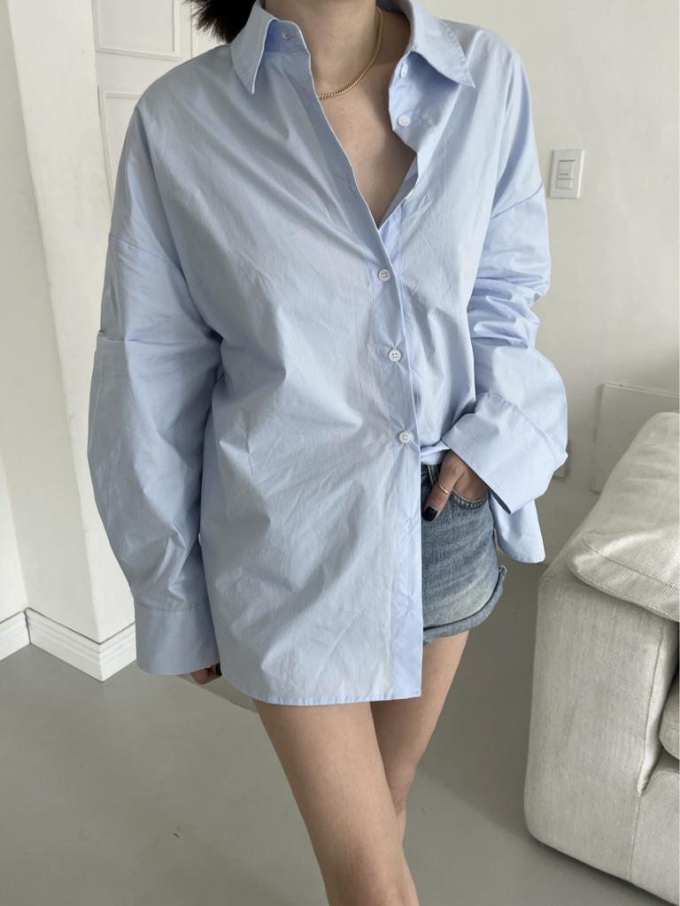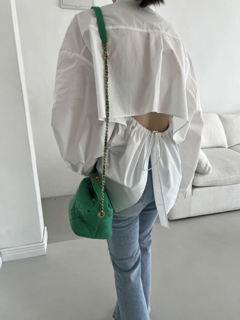 品名:빽스트링셔츠 ◎※☞颜色:소라, 화이트 ◎※☞尺寸:FREE ◎※☞材质:纯棉 100% 翻译