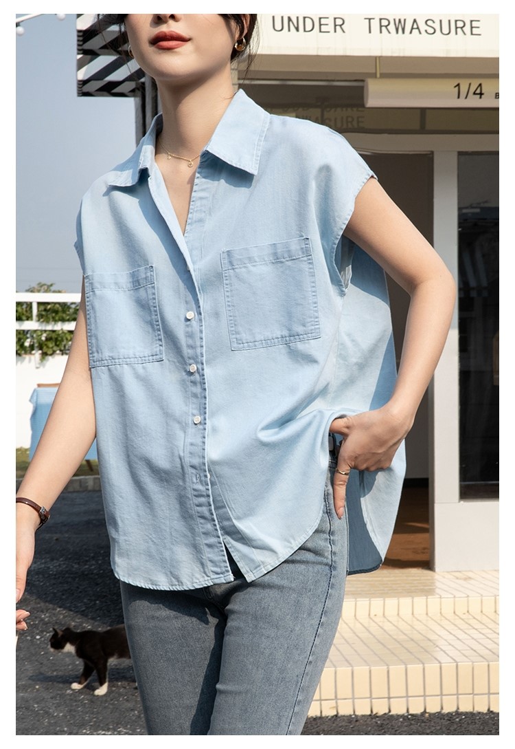 品名:데님 텐셀 캡소매 블라우스 ◎※☞颜色:연청, 진청 ◎※☞尺寸:FREE ◎※☞材质:纯棉 5%,聚酯 95% ◎※☞注意事项:只能干洗,只能手洗,不能手洗,机洗,不能使用漂白剂,不能烘干,不能熨烫,不能曲折 翻译