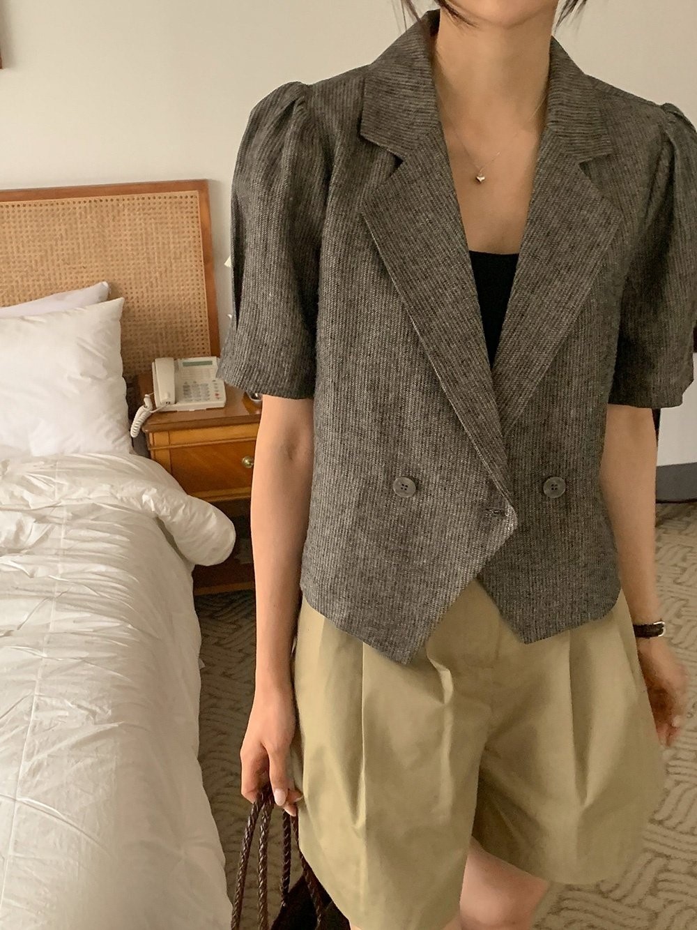 品名:린넨브로큰퍼프자켓 ◎※☞颜色:블랙, 연베이지 ◎※☞尺寸:FREE ◎※☞材质:纯棉 50%,亚麻 50% ◎※☞注意事项:只能干洗,只能手洗,不能手洗,机洗,不能使用漂白剂,不能烘干,不能熨烫,不能曲折 翻译