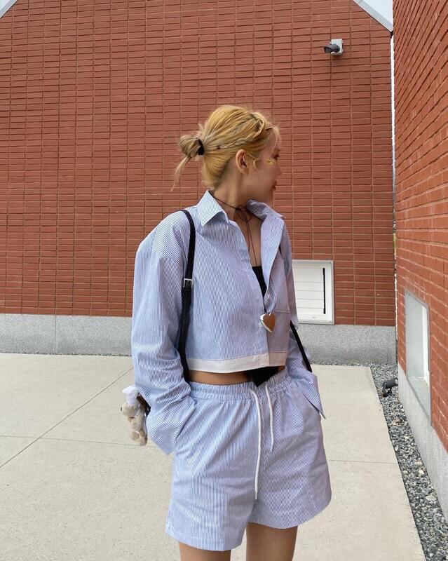 品名:ST배색 세트 ◎※☞颜色:네이비, 화이트 ◎※☞尺寸:FREE ◎※☞材质:纯棉 100% 翻译