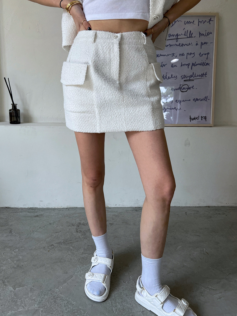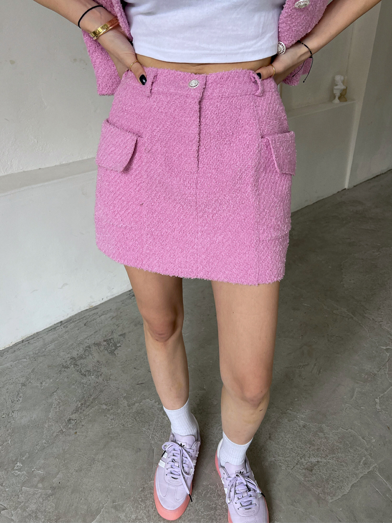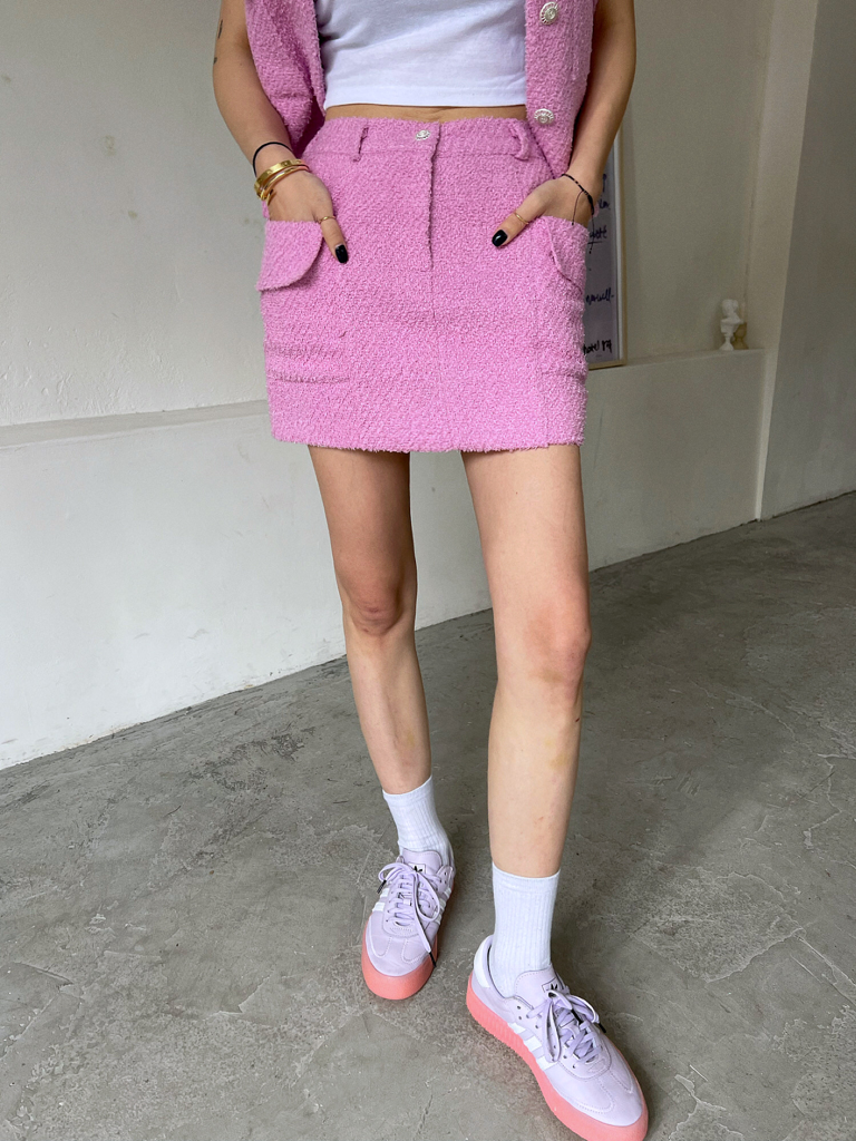 品名:트위드SK ◎※☞颜色:검정, 핑크, 화이트 ◎※☞尺寸:FREE ◎※☞材质:聚酯 100% 翻译