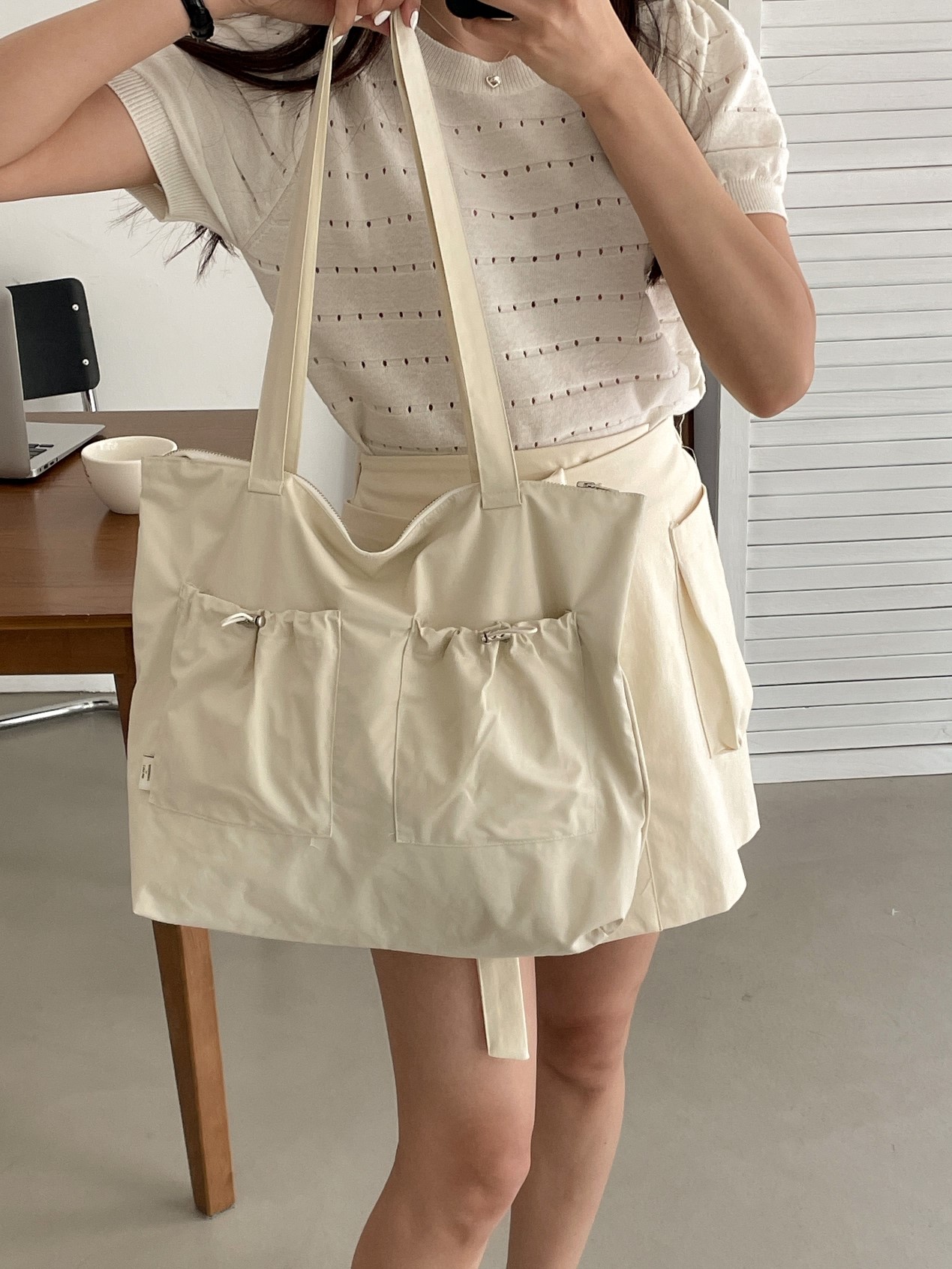 品名:스트링BAG #스트링에코백 #숄더백 ◎※☞颜色:먹색, 블랙, 아이보리, 크림 ◎※☞尺寸:F ◎※☞材质:纯棉 100% 翻译