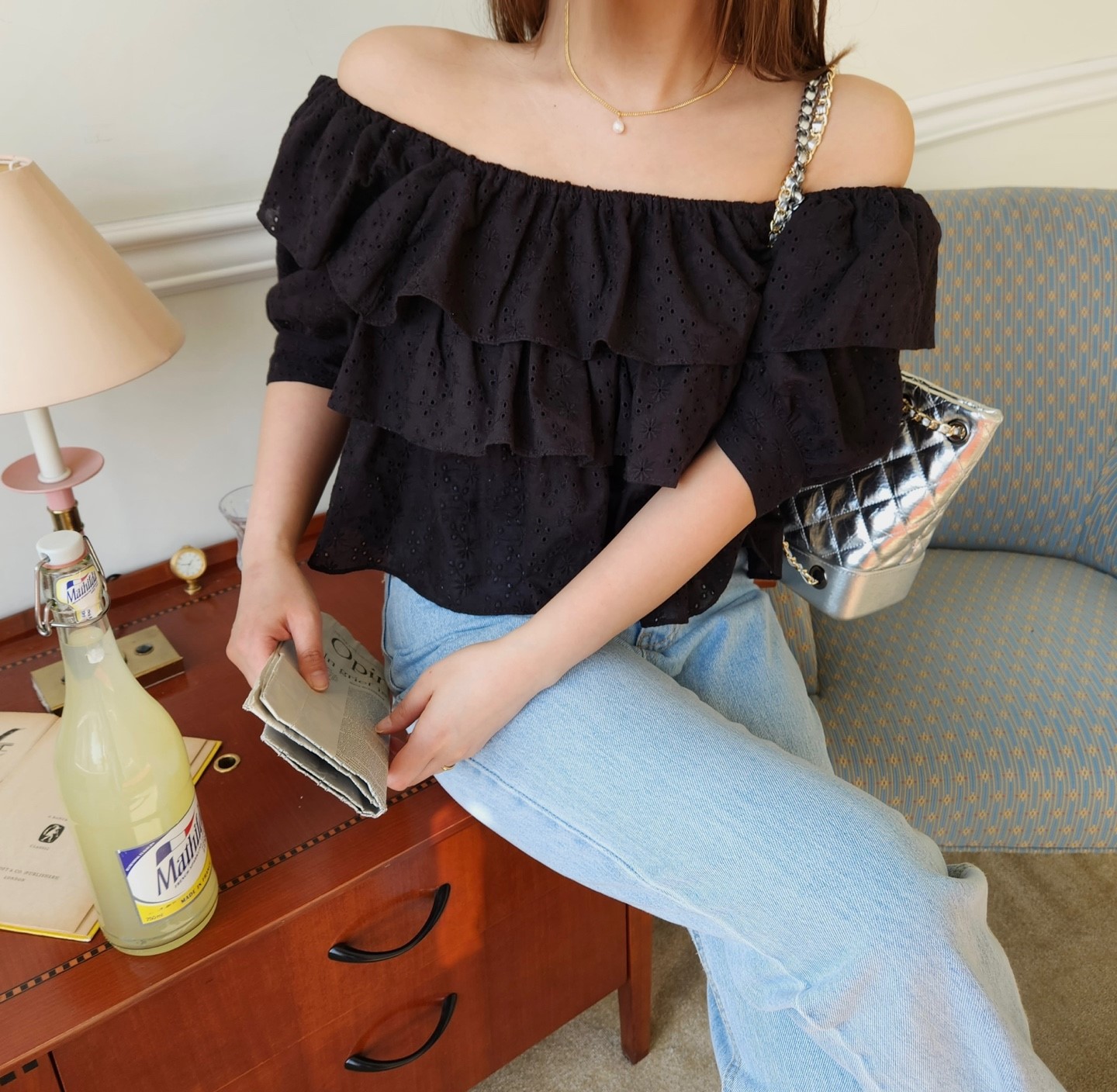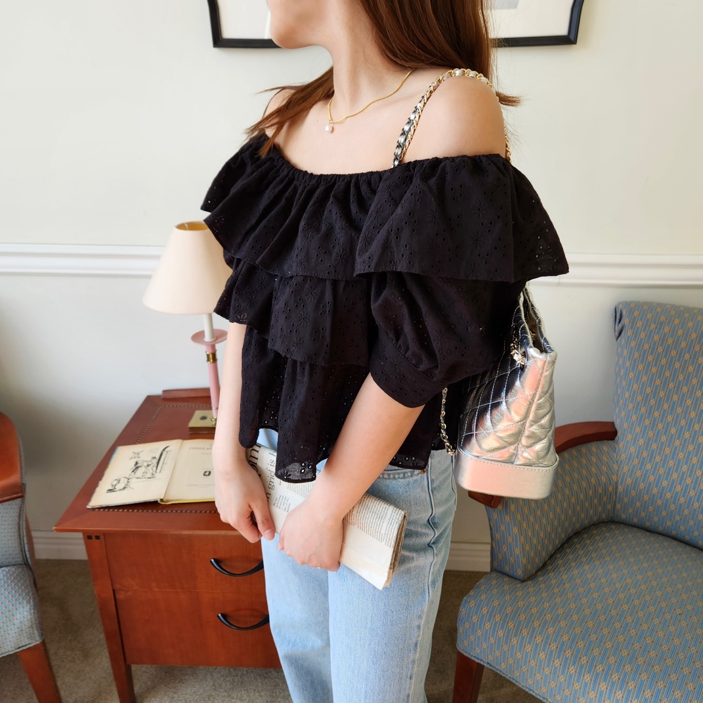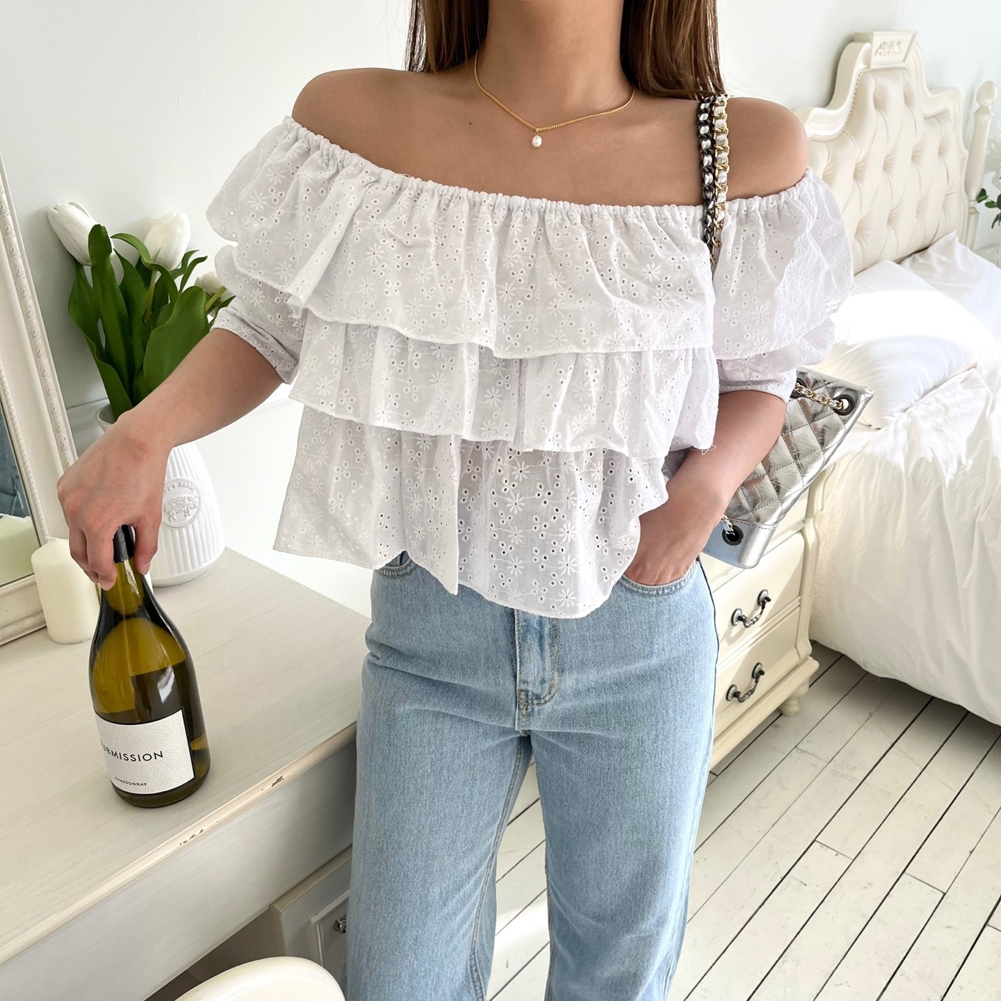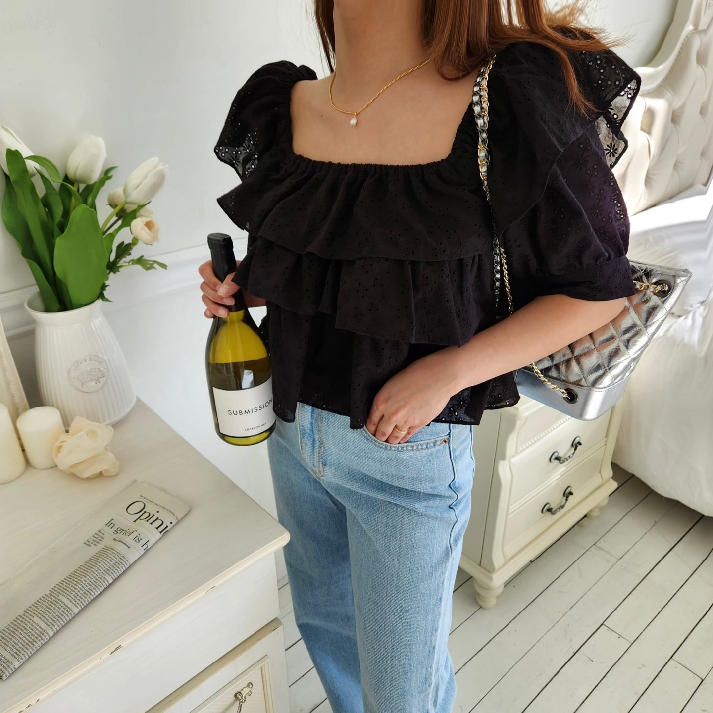 品名:메이캉캉블라우스 ◎※☞颜色:블랙, 화이트 ◎※☞尺寸:FREE ◎※☞材质:纯棉 100% 翻译