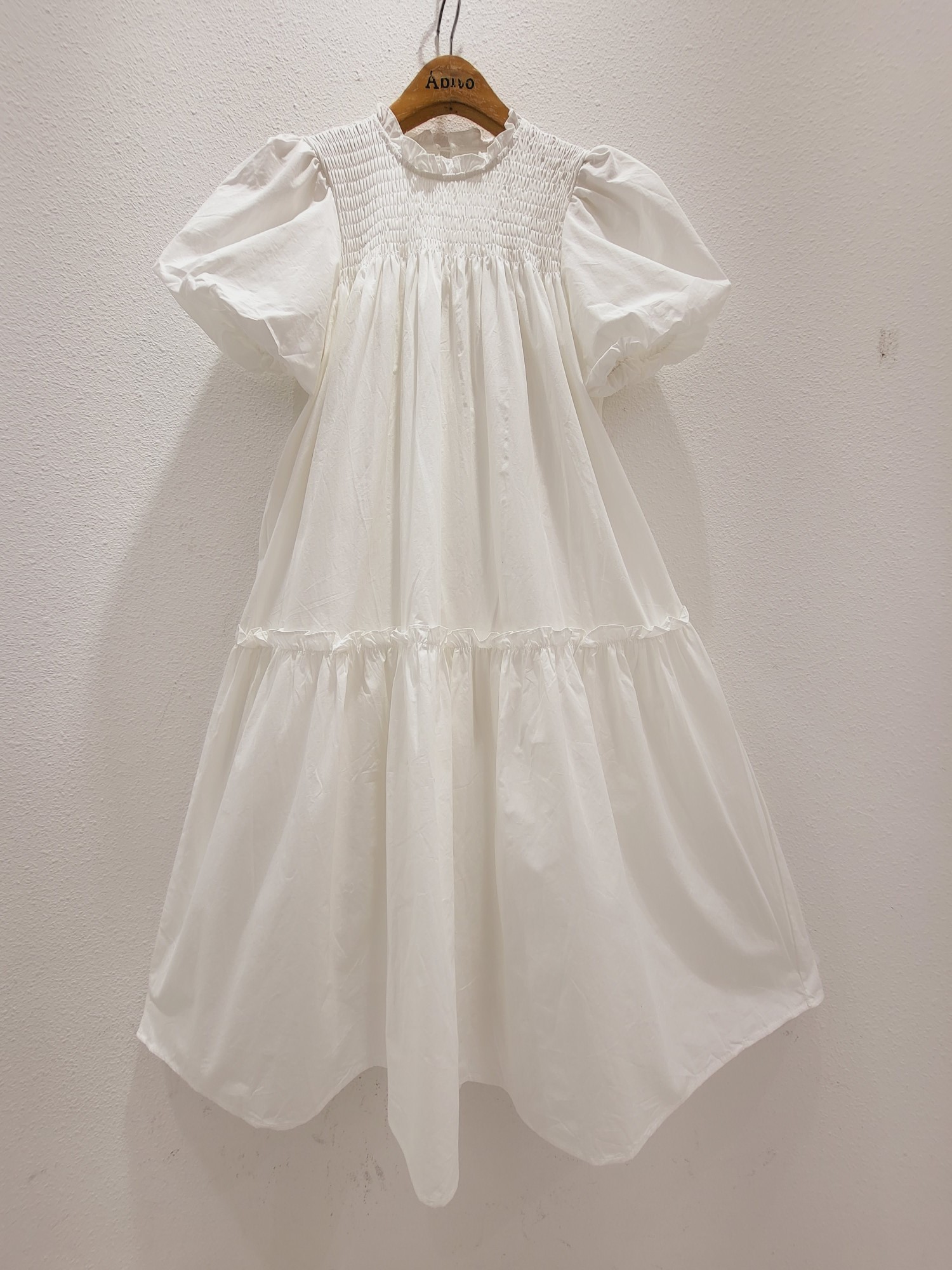 品名:빅벌룬소매 프릴티어드 롱원피스 ops ◎※☞颜色:핑, 흰 ◎※☞尺寸:FREE ◎※☞材质:聚酯 100% ◎※☞注意事项:只能干洗,只能手洗,不能手洗,机洗,不能使用漂白剂,不能烘干,不能熨烫,不能曲折