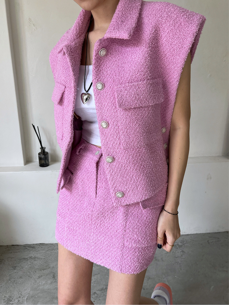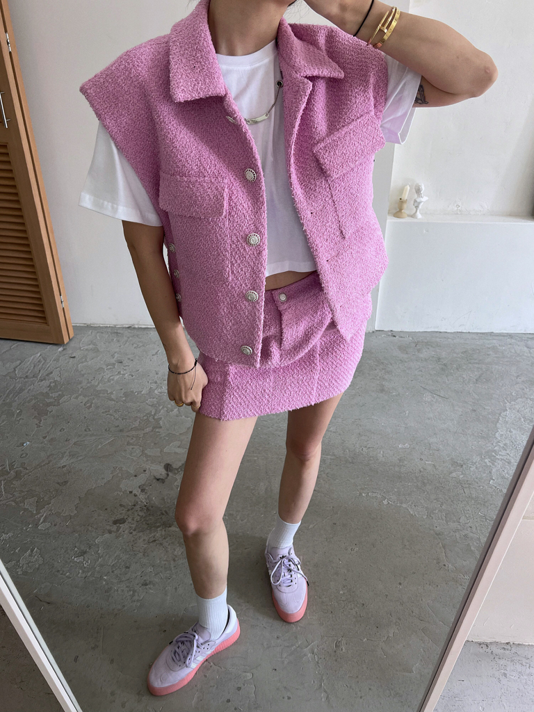 品名:트위드조끼 ◎※☞颜色:검정, 핑크, 화이트 ◎※☞尺寸:FREE ◎※☞材质:聚酯 100% 翻译