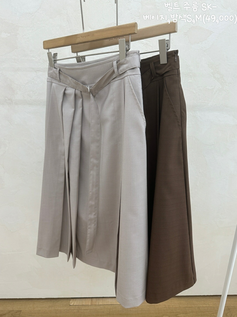 品名:벨트주름SK ◎※☞颜色:베이지, 브라운 ◎※☞尺寸:M, S ◎※☞材质:聚酯 90%,人造纤维 9%,스판 1% 翻译