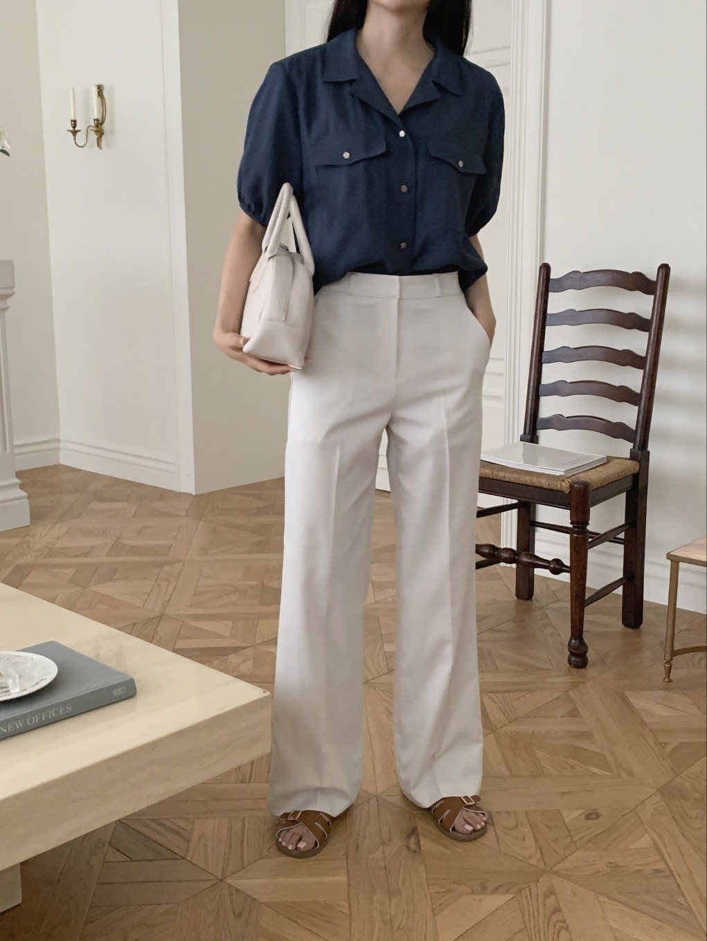 品名:23로렌와이드슬렉스 ◎※☞颜色:블랙, 아이버리, 진베이지 ◎※☞尺寸:L, M, S ◎※☞材质:스판 5%,聚酯 75%,人造纤维 20% 翻译