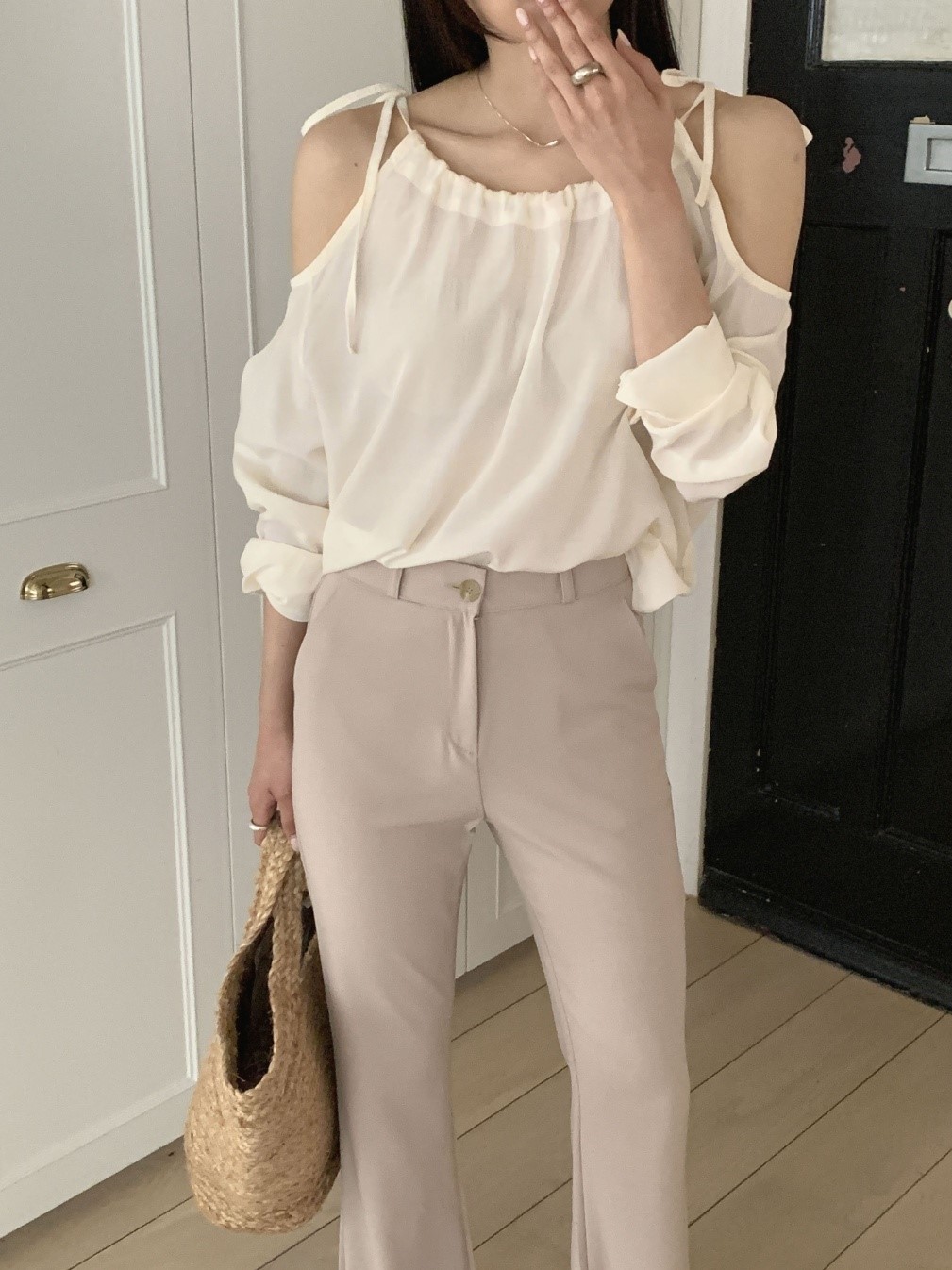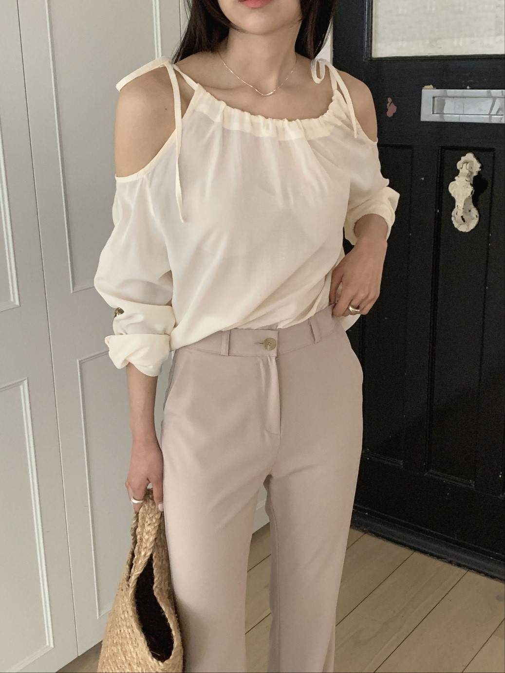 品名:베니스 블라우스 ◎※☞颜色:그레이, 블랙, 아이보리 ◎※☞尺寸:FREE ◎※☞材质:人造纤维 45%,聚酯 55% 翻译