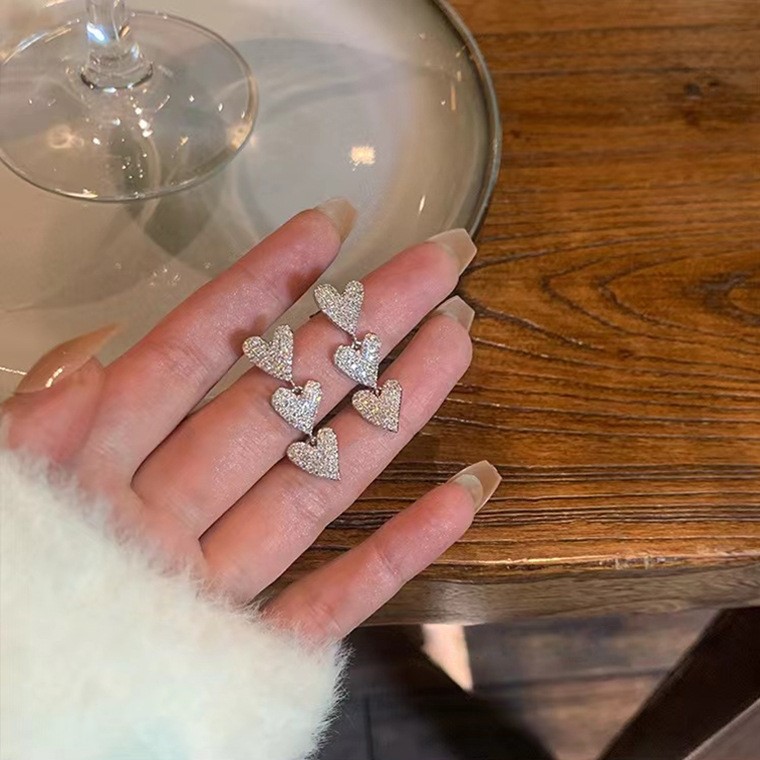 品名:E475 하트 큐빅 드롭 귀걸이 ◎※☞颜色:실버 ◎※☞尺寸:FREE ◎※☞材质:黄铜 100% 翻译