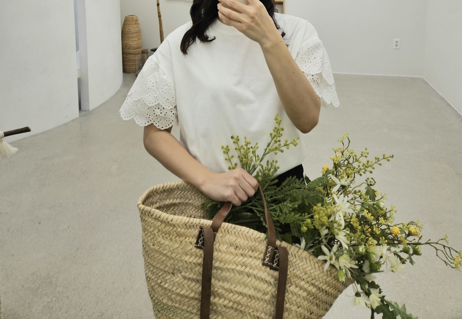 品名:주문폭주)펀칭티 ◎※☞颜色:블랙, 아이보리, 핑크 ◎※☞尺寸:FREE ◎※☞材质:纯棉 100% ◎※☞注意事项:只能干洗,只能手洗,不能手洗,机洗,不能使用漂白剂,不能烘干,不能熨烫,不能曲折 翻译