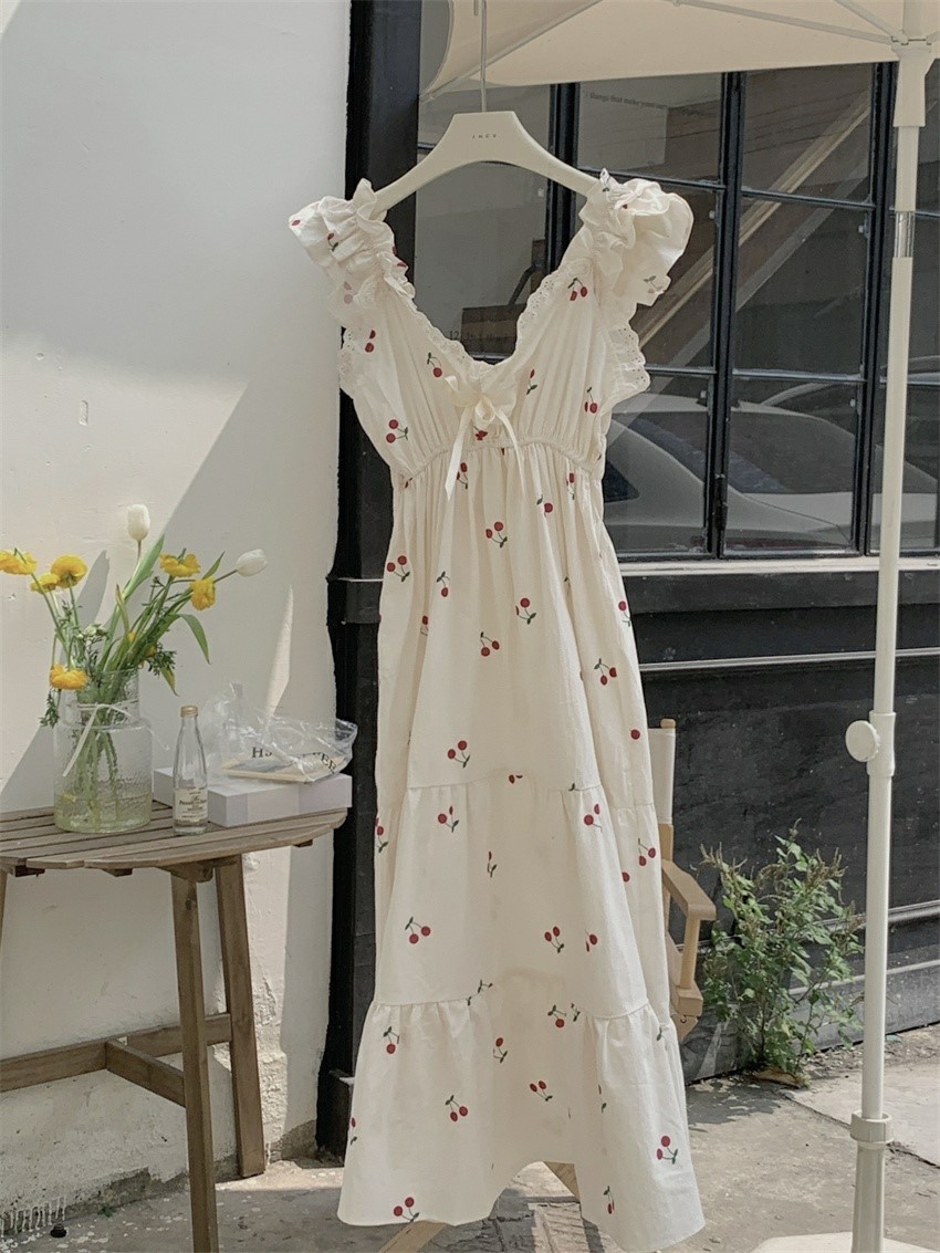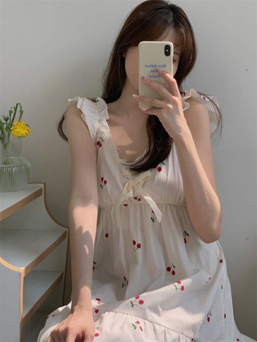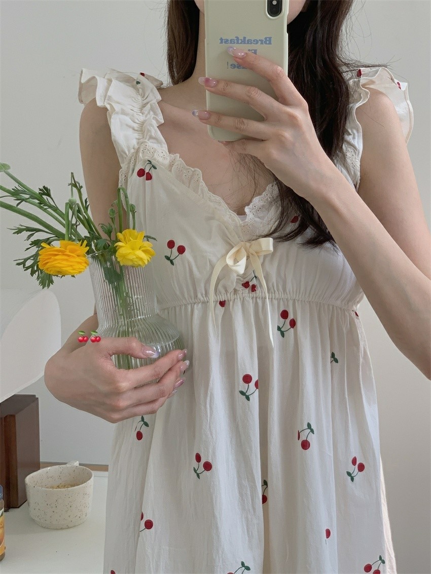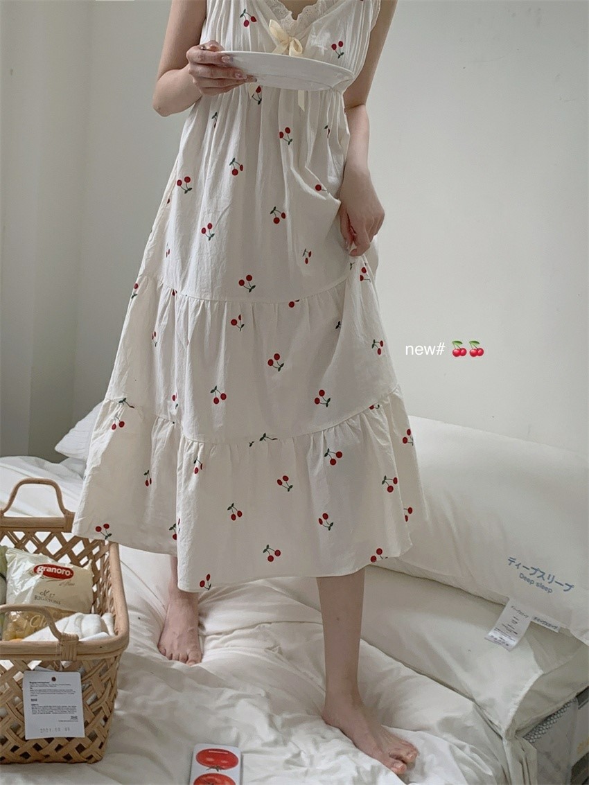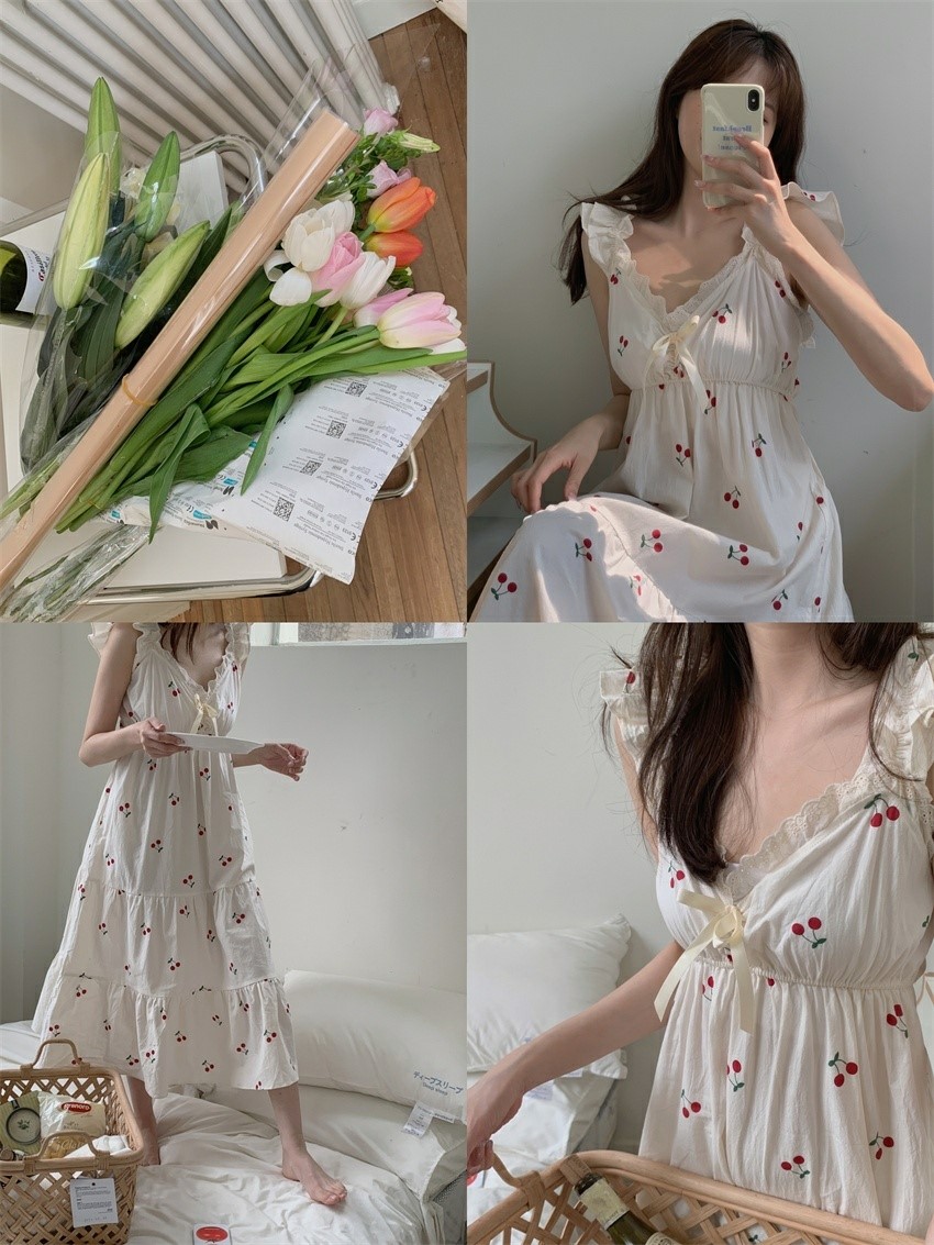 品名:카밀라체리잠옷원피스 ◎※☞颜色:아이보리 ◎※☞尺寸:FREE ◎※☞材质:纯棉 100% 翻译