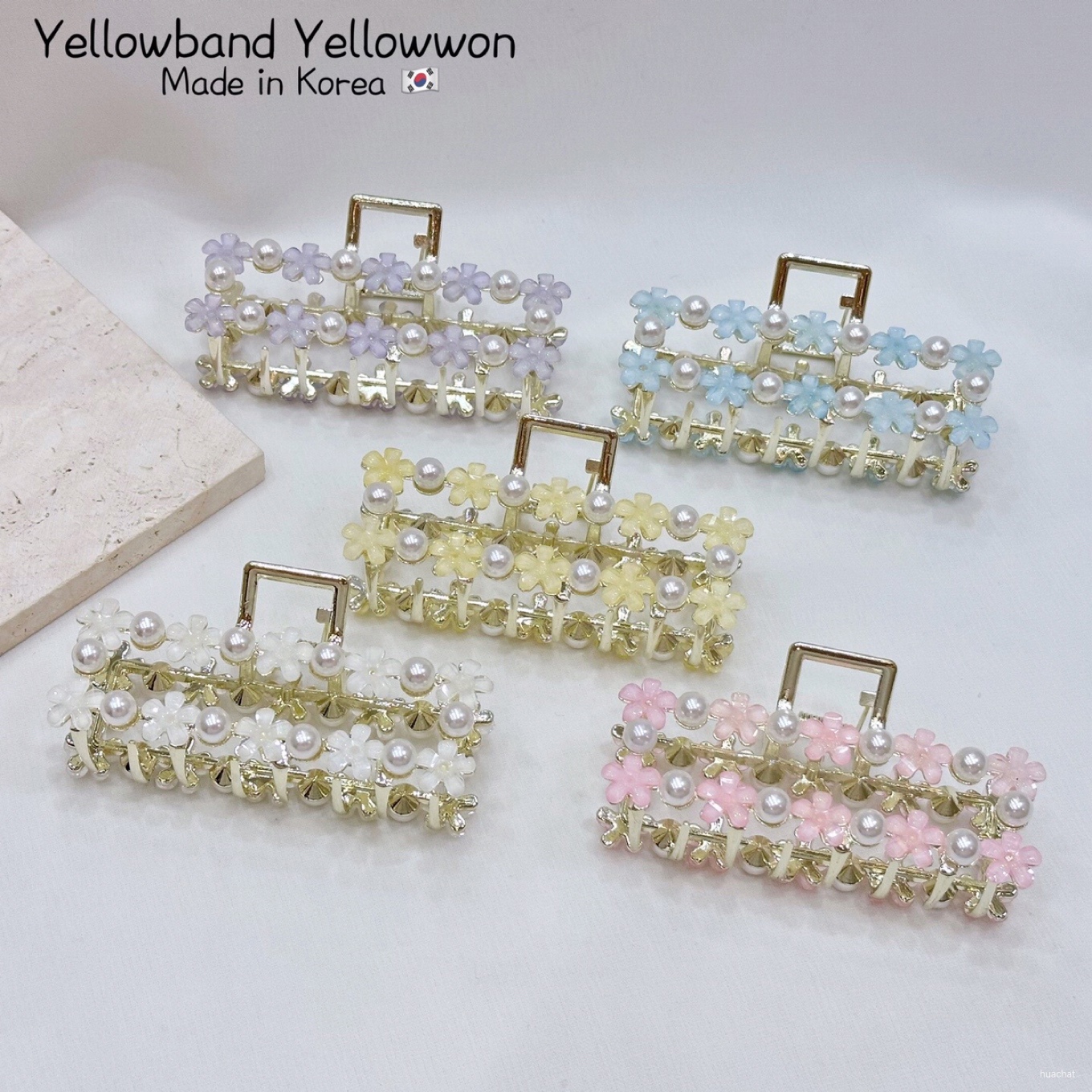 发夹 鲨鱼夹 手工款 方形 花朵 亚克力 珍珠 糖果色 五个颜色