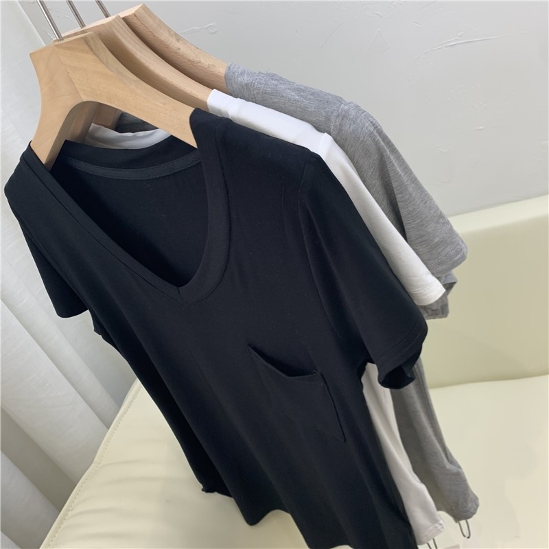 品名:데일리 브이넥 반팔 티셔츠 ◎※☞颜色:그레이, 블랙, 화이트 ◎※☞尺寸:FREE ◎※☞材质:弹力 30%,纯棉 30%,人造纤维 40% ◎※☞注意事项:只能干洗,只能手洗,不能手洗,机洗,不能使用漂白剂,不能烘干,不能熨烫,不能曲折