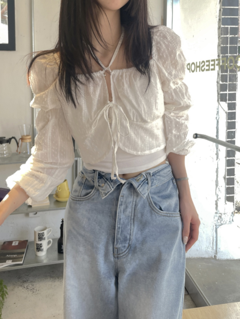 品名:앤디리본블라우스#볼레로가디건#밴딩블라우스 ◎※☞颜色:블랙, 아이 ◎※☞尺寸:FREE ◎※☞材质:纯棉 100% 翻译