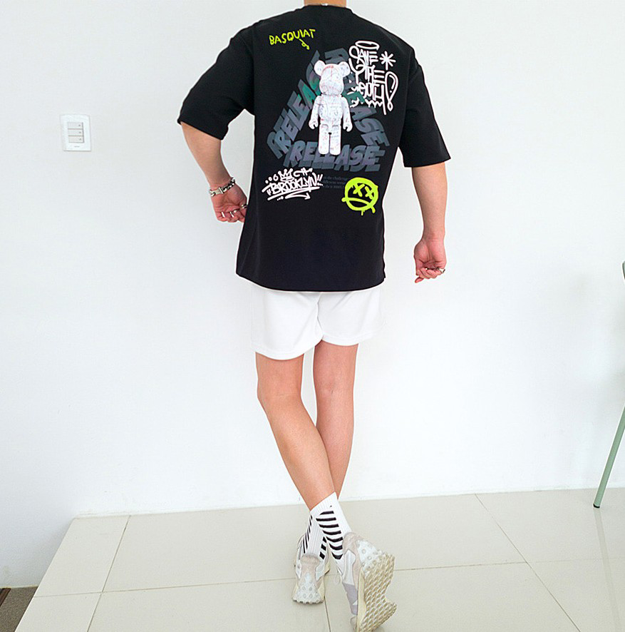 品名:낙서 오버랩 분또 반팔티 ◎※☞颜色:검정, 레몬, 흰색 ◎※☞尺寸:FREE ◎※☞材质:纯棉 100% 翻译