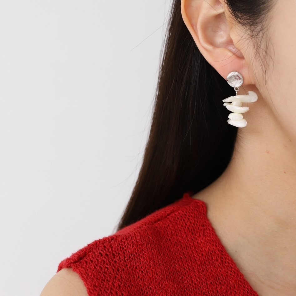 品名:E3099 자개 귀걸이 ◎※☞颜色:아이보리 ◎※☞尺寸:FREE ◎※☞材质:镀金 0% 翻译