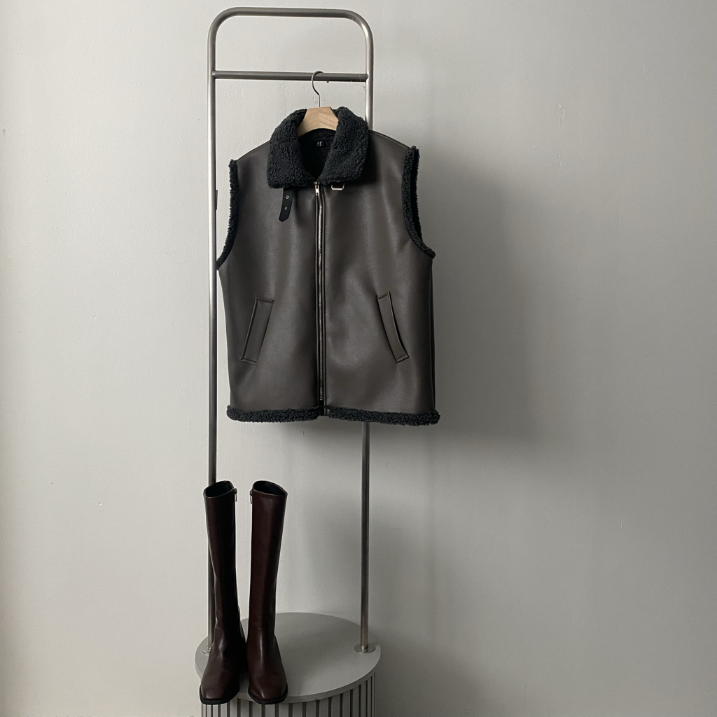 品名:时尚皮毛一体夹克马甲 ◎※☞颜色:다크그레이, 블랙 ◎※☞尺寸:FREE ◎※☞材质:聚氨酯 100% 翻译