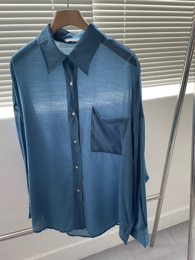 品名:(Sale,세일)실키베이직셔츠(WBL) ◎※☞颜色:진블루 ◎※☞尺寸:FREE ◎※☞材质:레이온 75%,나일론 25% 翻译