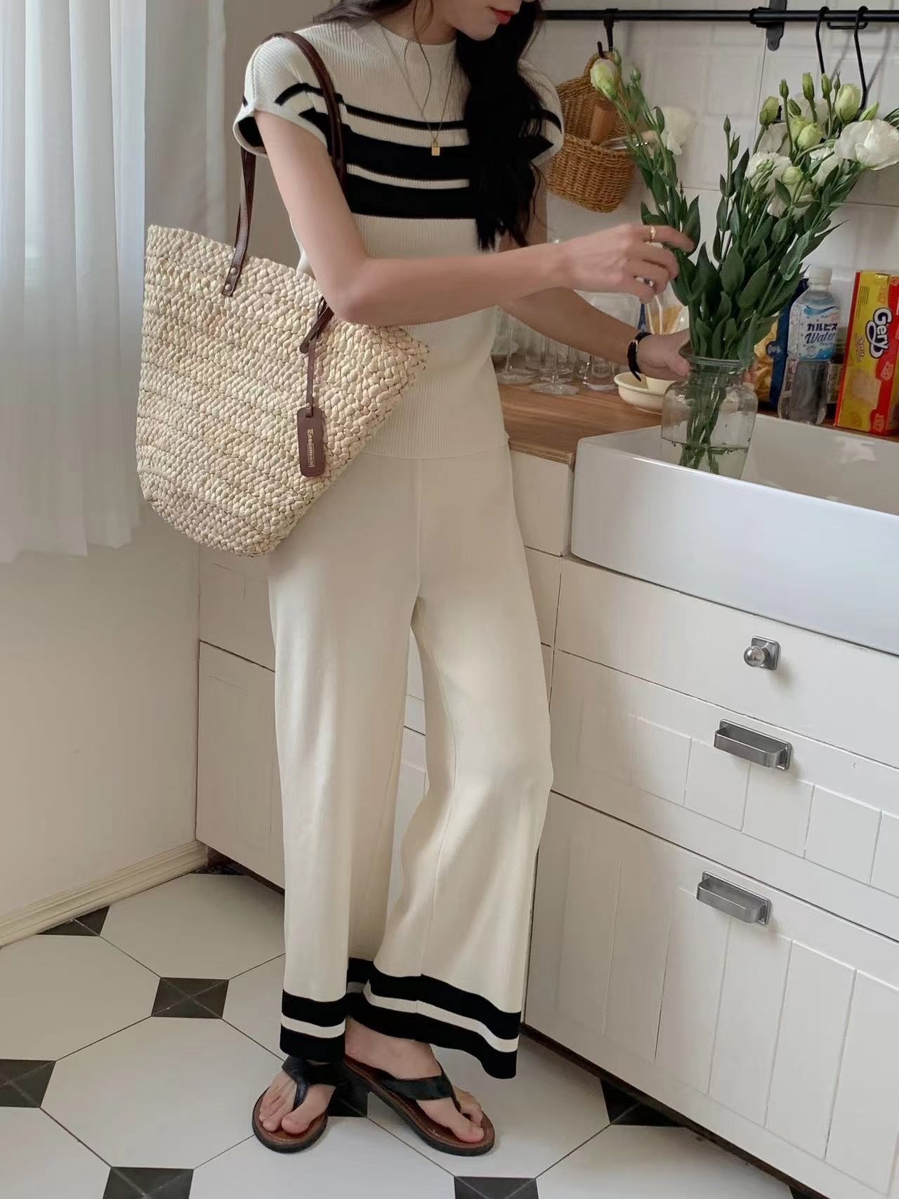 品名:단라운드상하 세트 ◎※☞颜色:블랙, 아이보리 ◎※☞尺寸:FREE ◎※☞材质:聚氨酯 5%,聚酯 95% ◎※☞注意事项:只能干洗,只能手洗,不能手洗,机洗,不能使用漂白剂,不能烘干,不能熨烫,不能曲折 翻译