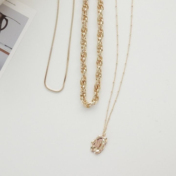 品名:N1113 볼드 목걸이 세트 ◎※☞颜色:골드, 실버 ◎※☞尺寸:FREE ◎※☞材质:镀金 0% 翻译