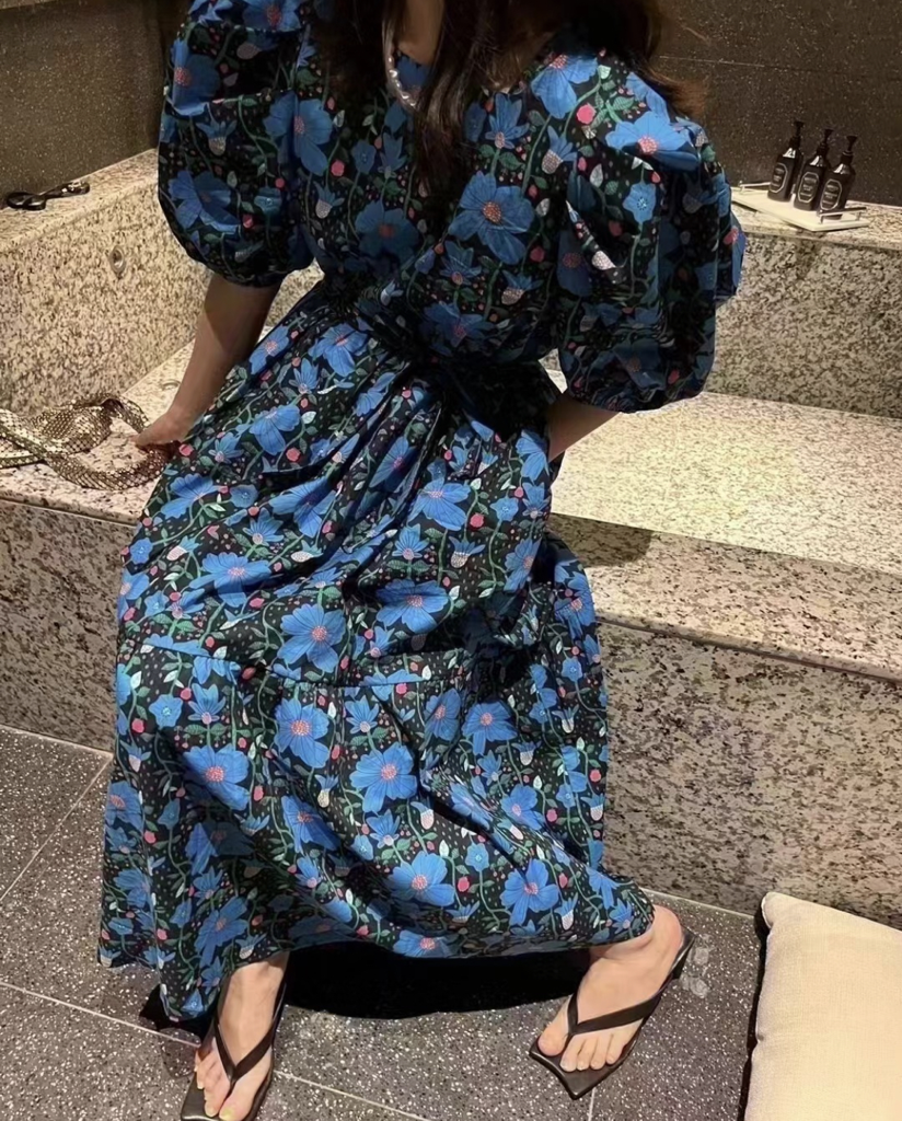 品名:2083-2 드벨리 플라워 원피스 ◎※☞颜色:그린, 블루 ◎※☞尺寸:FREE ◎※☞材质:聚酯 100% 翻译