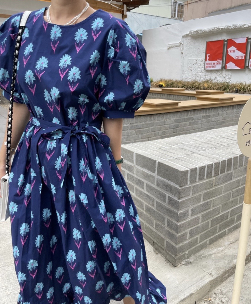 品名:2697 튤립 플라워 원피스 ◎※☞颜色:네이비, 화이트 ◎※☞尺寸:FREE ◎※☞材质:纯棉 100% 翻译