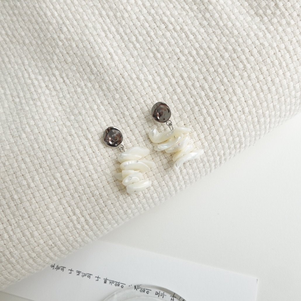 品名:E3099 자개 귀걸이 ◎※☞颜色:아이보리 ◎※☞尺寸:FREE ◎※☞材质:镀金 0% 翻译