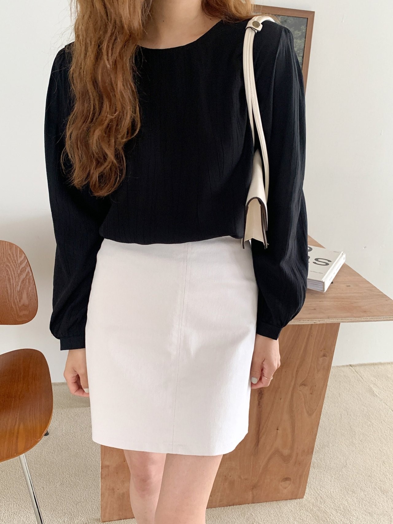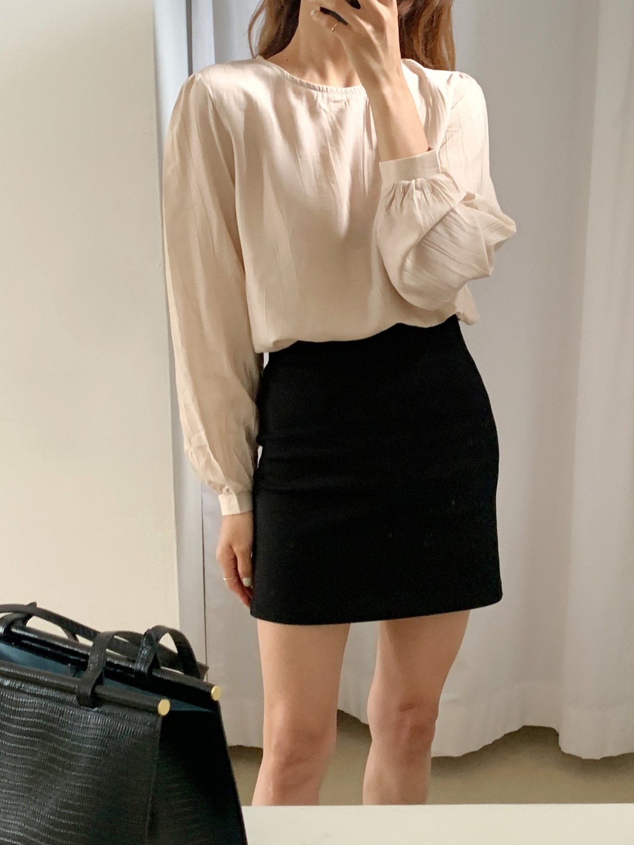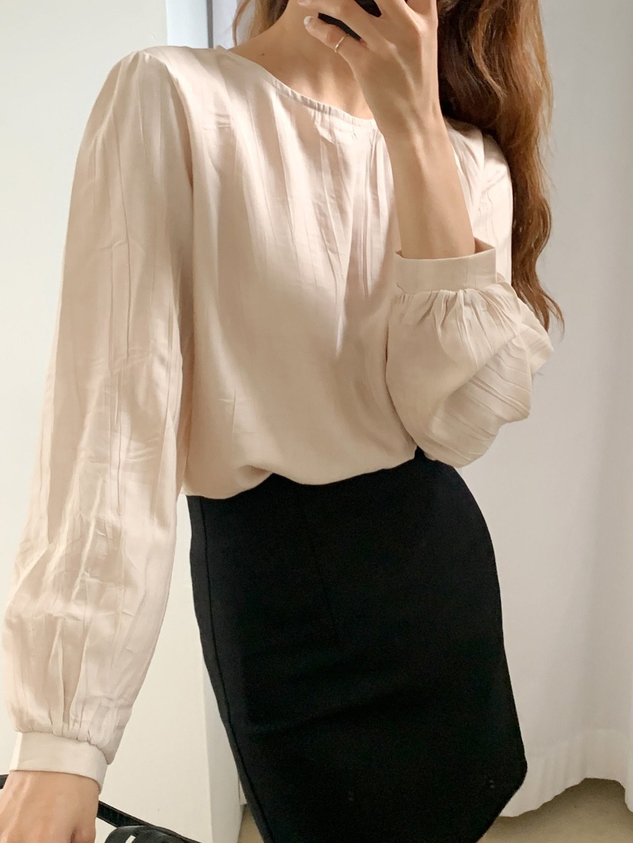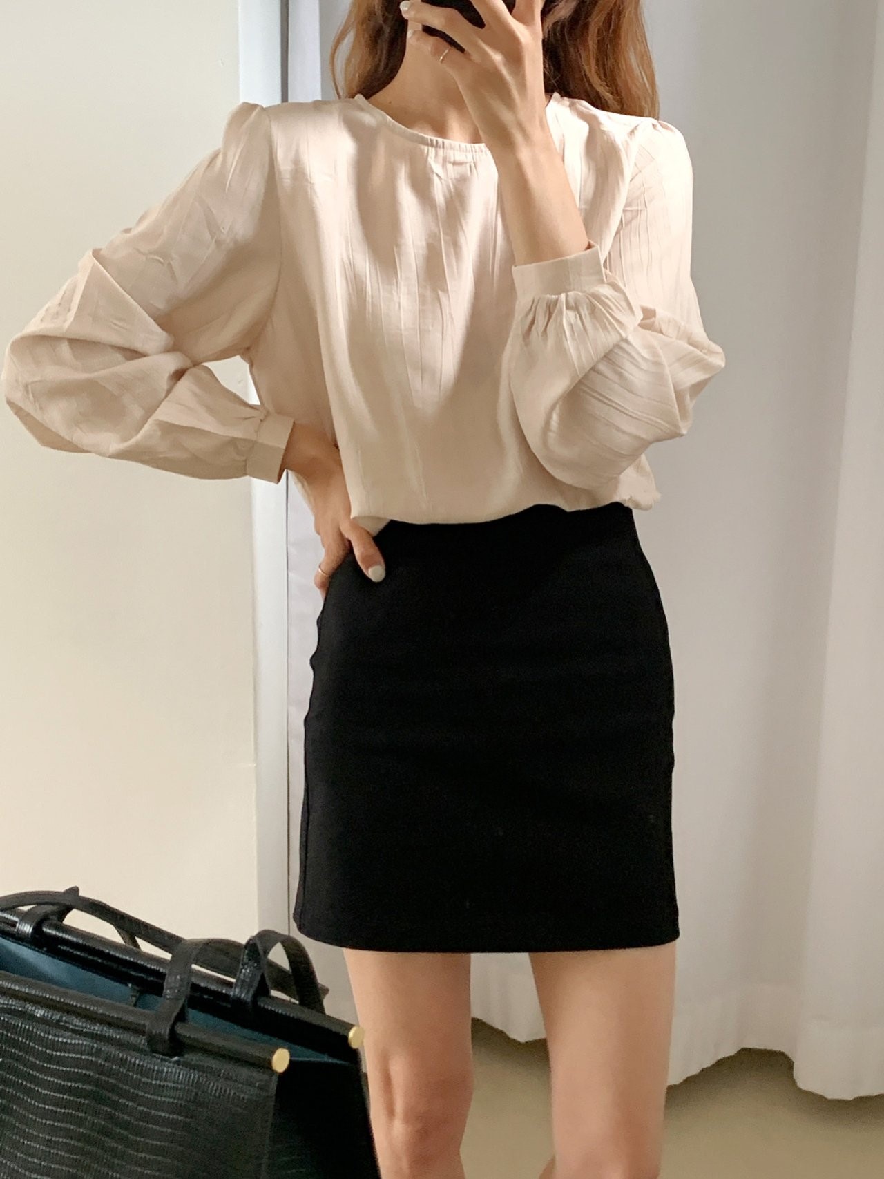 品名:키네 블라우스 ◎※☞颜色:베이지, 블랙, 아이보리 ◎※☞尺寸:FREE ◎※☞材质:尼龙 18%,人造纤维 82% 翻译